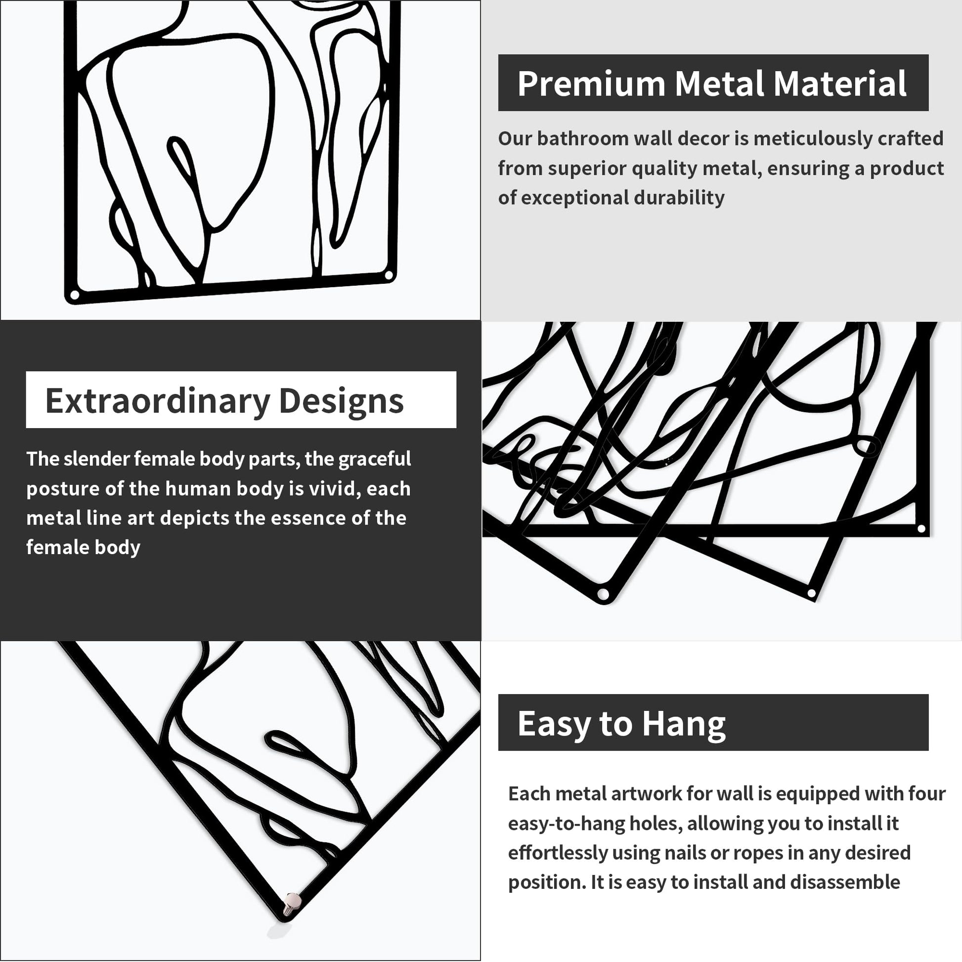 Elegant Design: The minimalist metal line art set features three unique designs that capture the essence of the female form with slender, graceful lines, bringing sophistication to your home.
