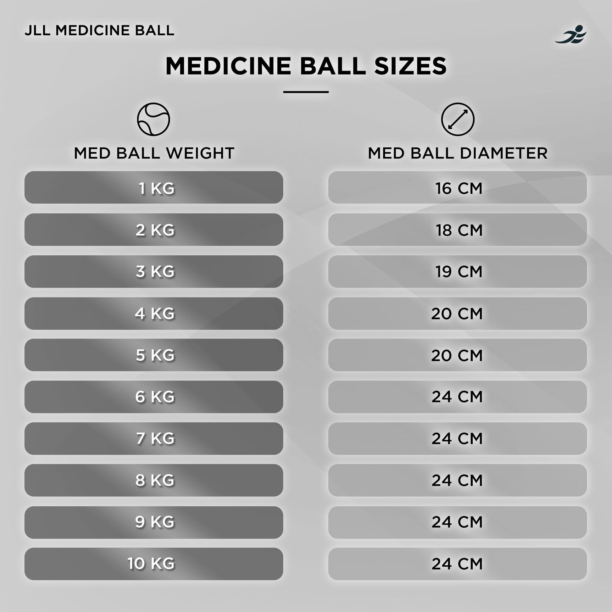 - JLL® Medicine Balls 1-10kg | Heavy Duty Rubber | Colour Coded Weights -