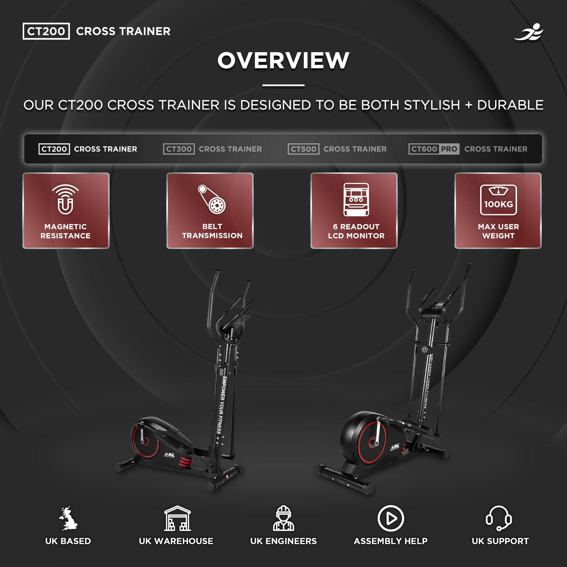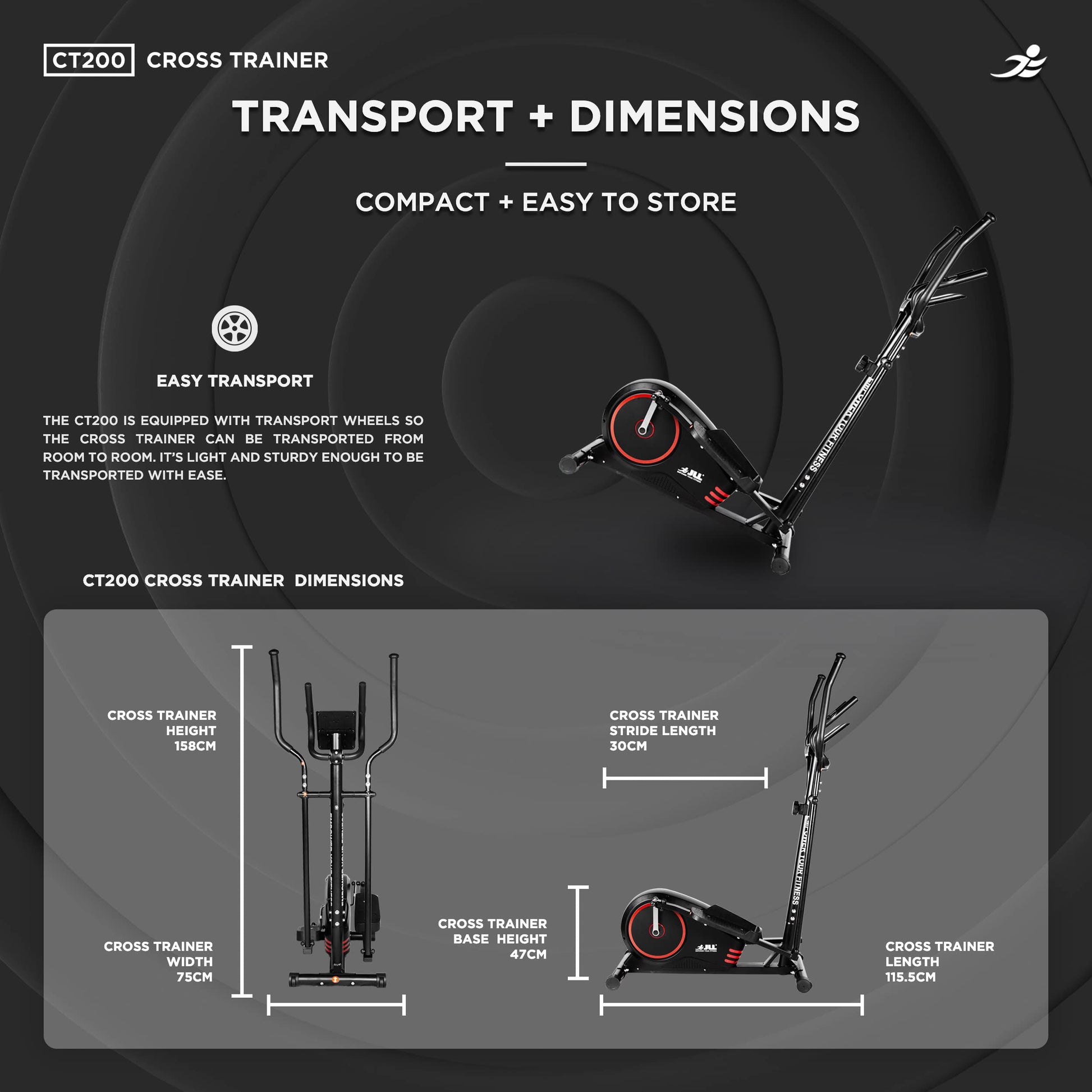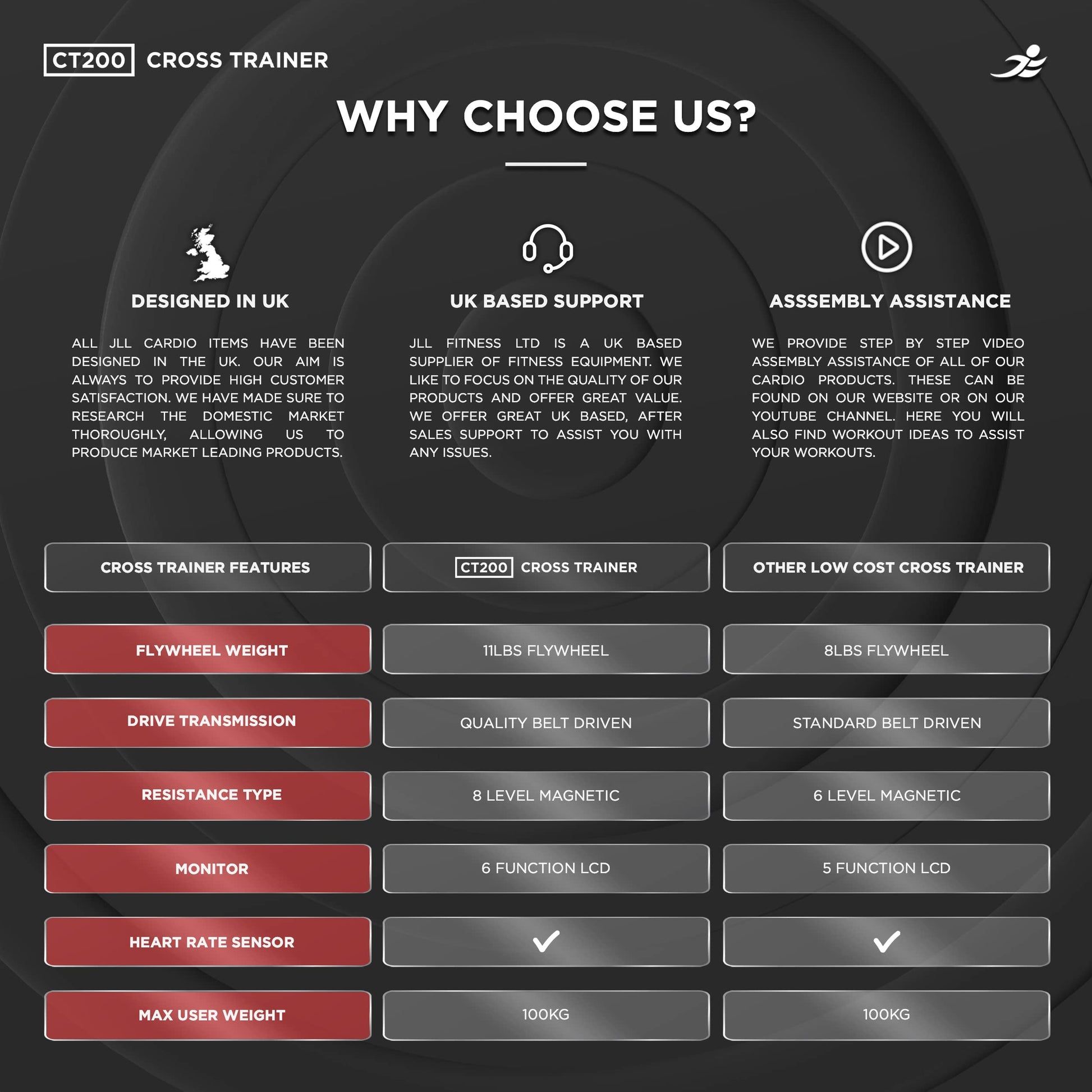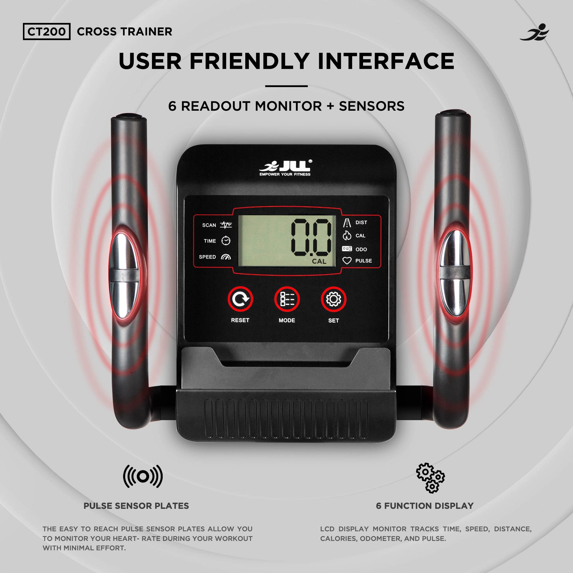 - JLL CT200 Home Elliptical Cross Trainer | 2024 Model | 8 Level Magnetic Resistance | Cardio Workout, Advanced Momentum Mechanism to resemble 10kg | Console Display with Heart Rate Sensor -