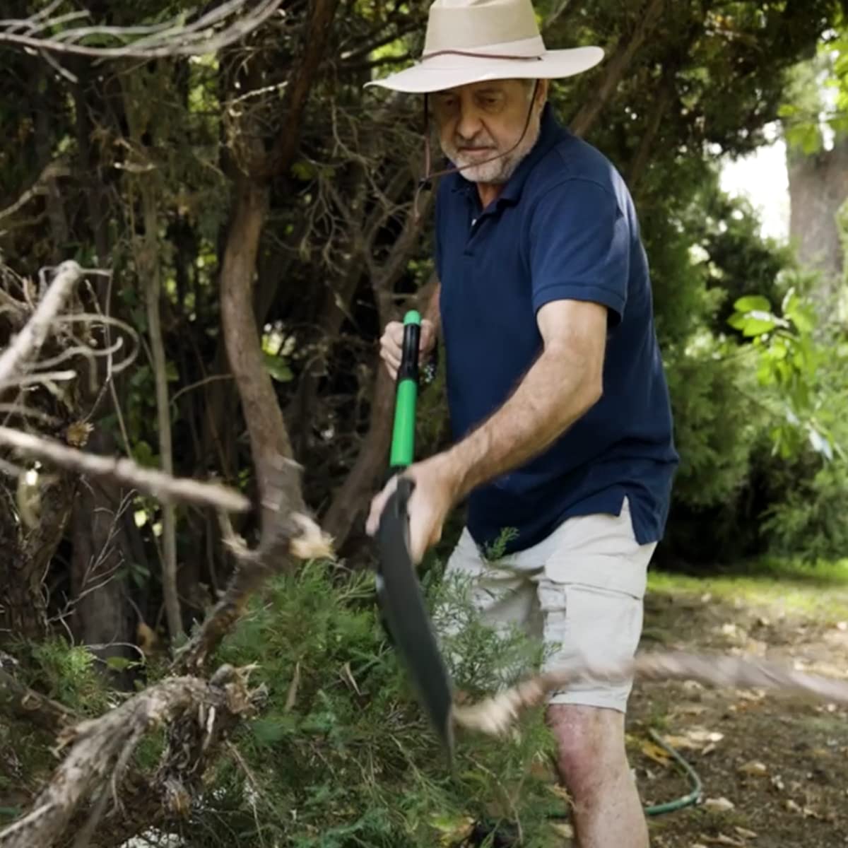 Serrated teeth make cutting through roots and branches easy and efficient.