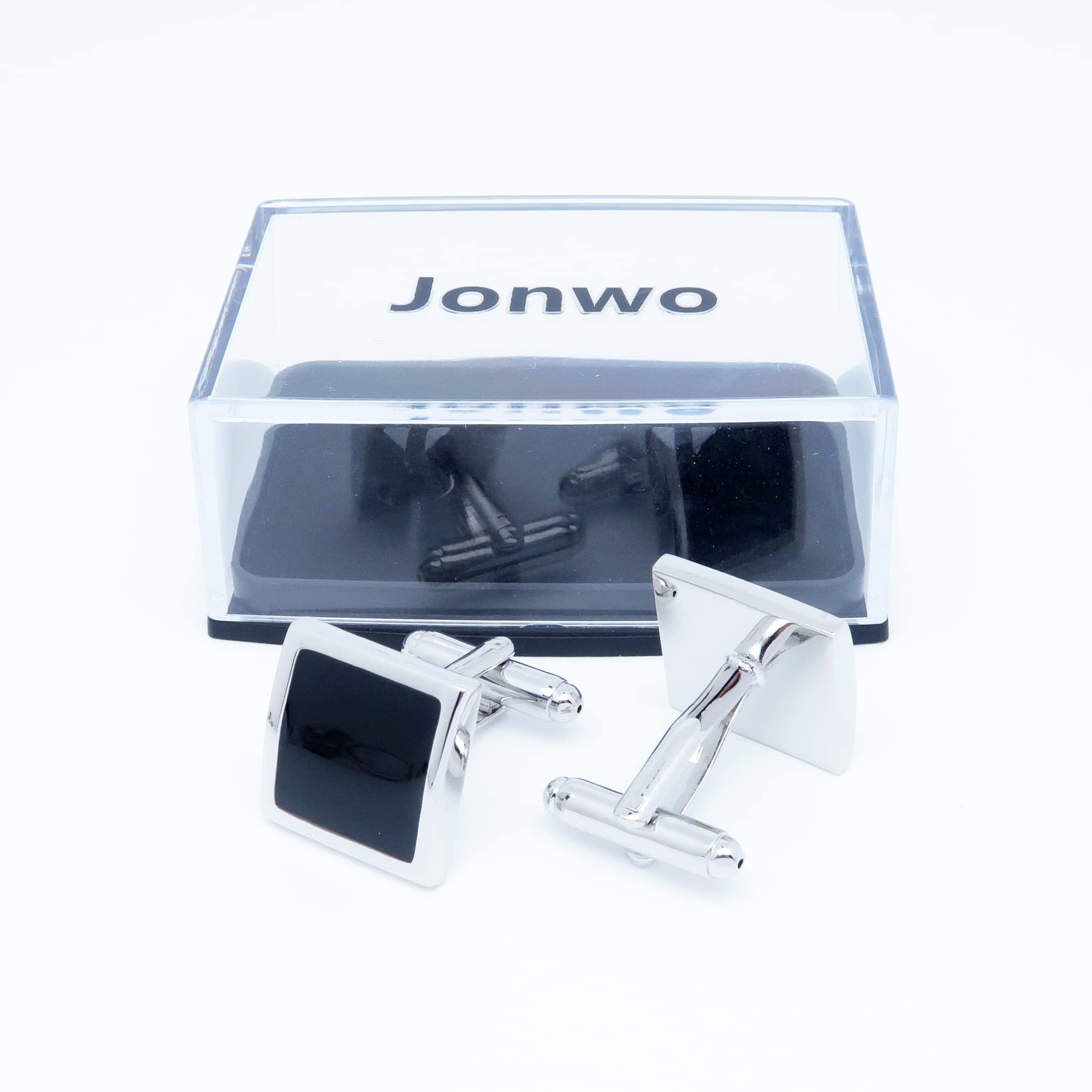 Jonwo Classic Square Cuff Links for Men – Silver and Black – Perfect Gift in a Gift Box