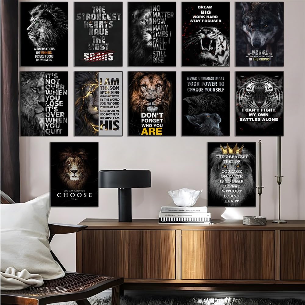 Motivational Lion Wall Art: A powerful lion design to inspire strength and courage, making it an ideal piece for your living room, home office, or bedroom.