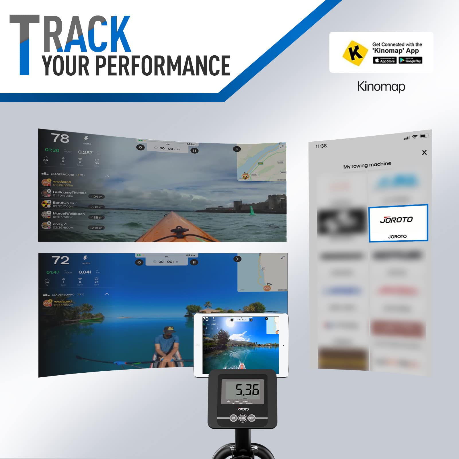 Track Your Workout Performance – The large LCD monitor tracks essential workout data like time, distance, calories, count, and total count. Plus, it offers Bluetooth functionality, allowing you to connect with smart apps like Kinomap to enhance your workout with virtual challenges and competitions.