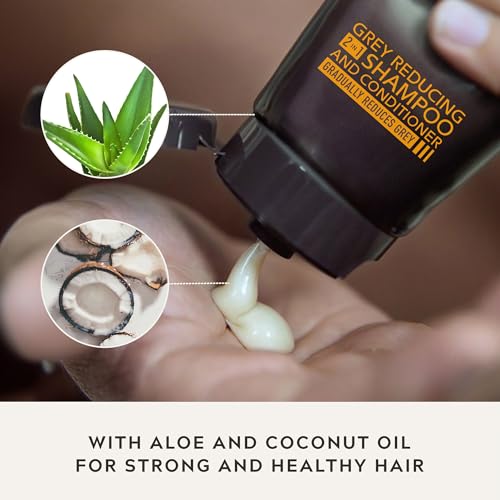 Gradually Reduces Grey: This shampoo and conditioner combination works to reduce grey hairs gradually, leaving a natural look without harsh dyes or peroxide.
