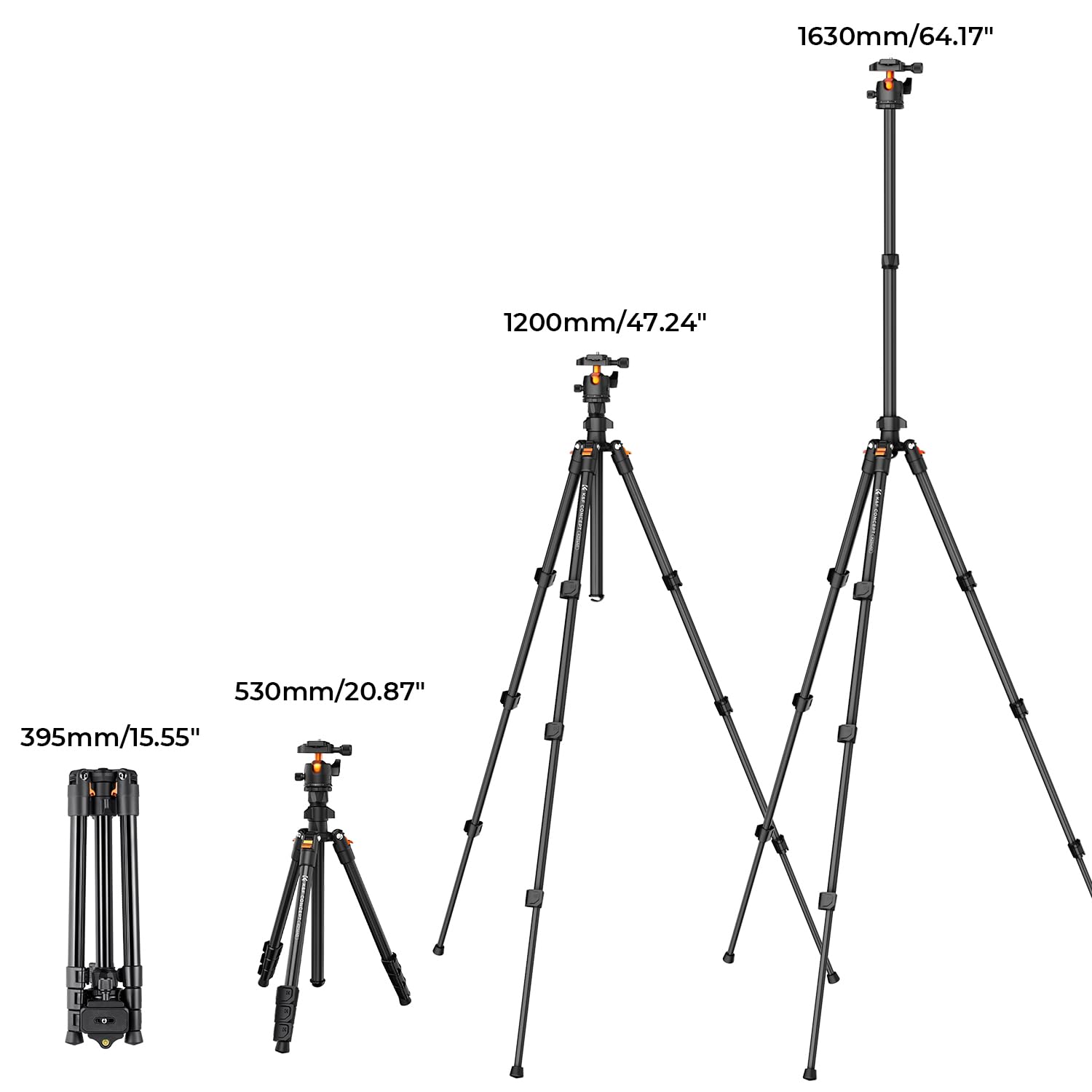 - K&F Concept 64 inch/163cm Camera Tripod | Lightweight Aluminum Travel Outdoor Tripod | Ball Head Load Capacity 20kg/44lbs -
