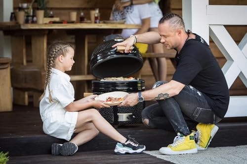 The Kamado Bono Minimo 15" Ceramic BBQ Grill in classic black is perfect for small-medium gatherings, offering versatility with grilling, smoking, and baking all in one. Whether you're hosting a family BBQ on the terrace, grilling at the park, or having a picnic, this compact ceramic grill can do it all. It’s the ideal choice for dads who love to cook for a small group or want an outdoor grill for various cooking tasks.