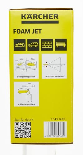 The Kärcher FJ6 Foam Jet Nozzle is an essential accessory for achieving a powerful foam for deep cleaning. Perfect for a range of surfaces including vehicles, garden furniture, walls, and driveways, this nozzle ensures that cleaning is both effective and efficient. Compatible with Kärcher K2 to K7 pressure washers, it delivers superior results with its 0.6L detergent container.