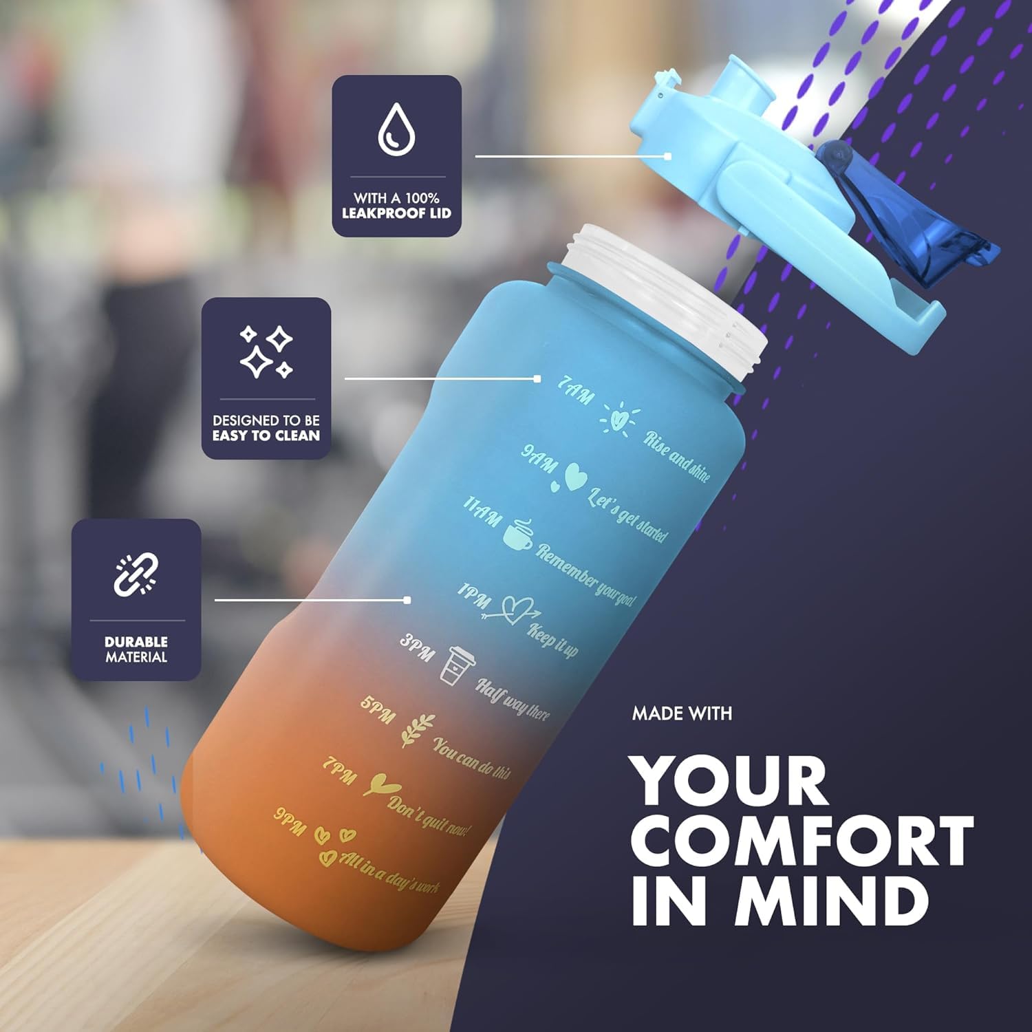 2L Capacity: With a generous 2-liter capacity, this bottle allows you to track your daily water intake easily and stay on top of your hydration goals.