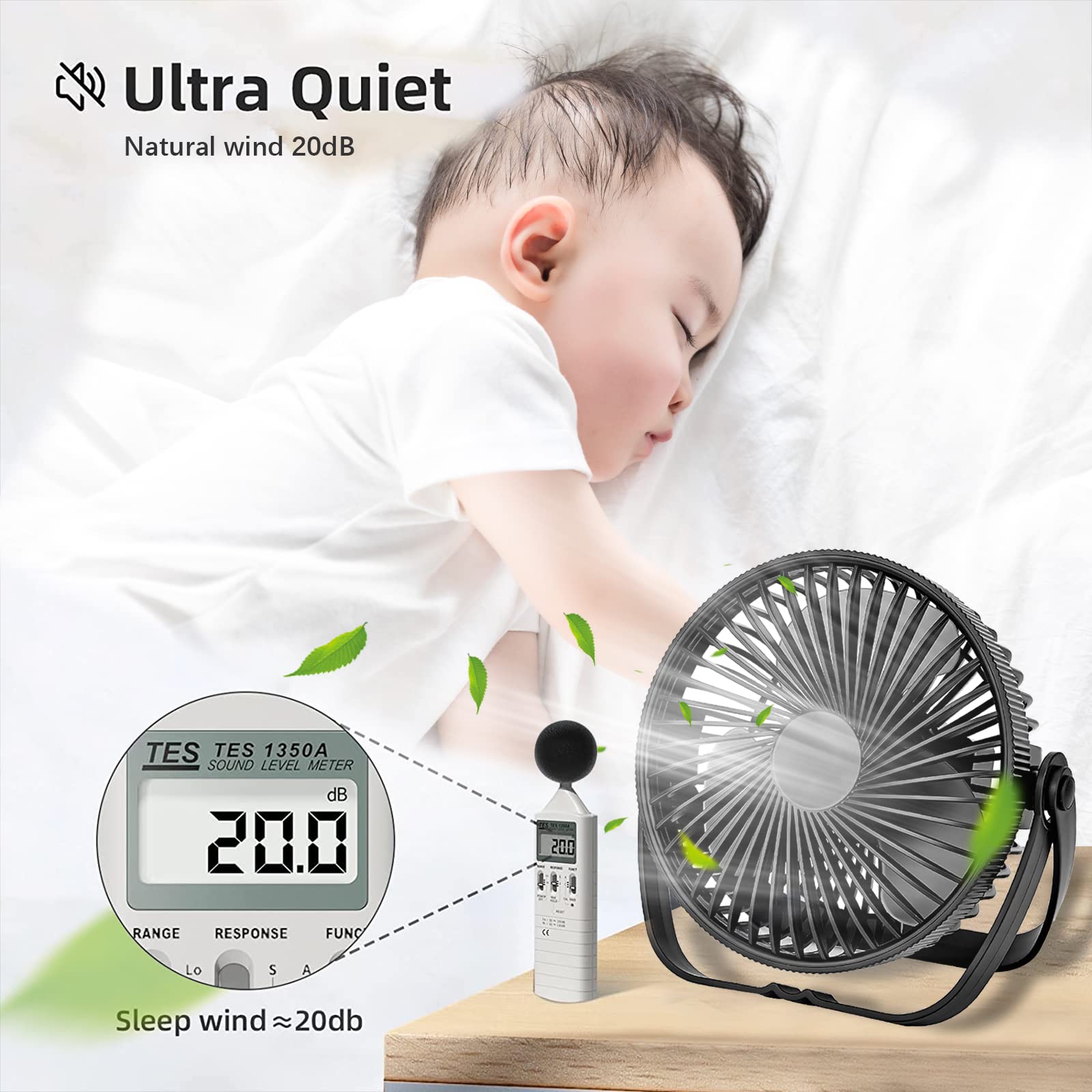 Adjustable Speeds & Angle – Choose from 3 wind speeds and enjoy 360° rotation for customizable airflow.
