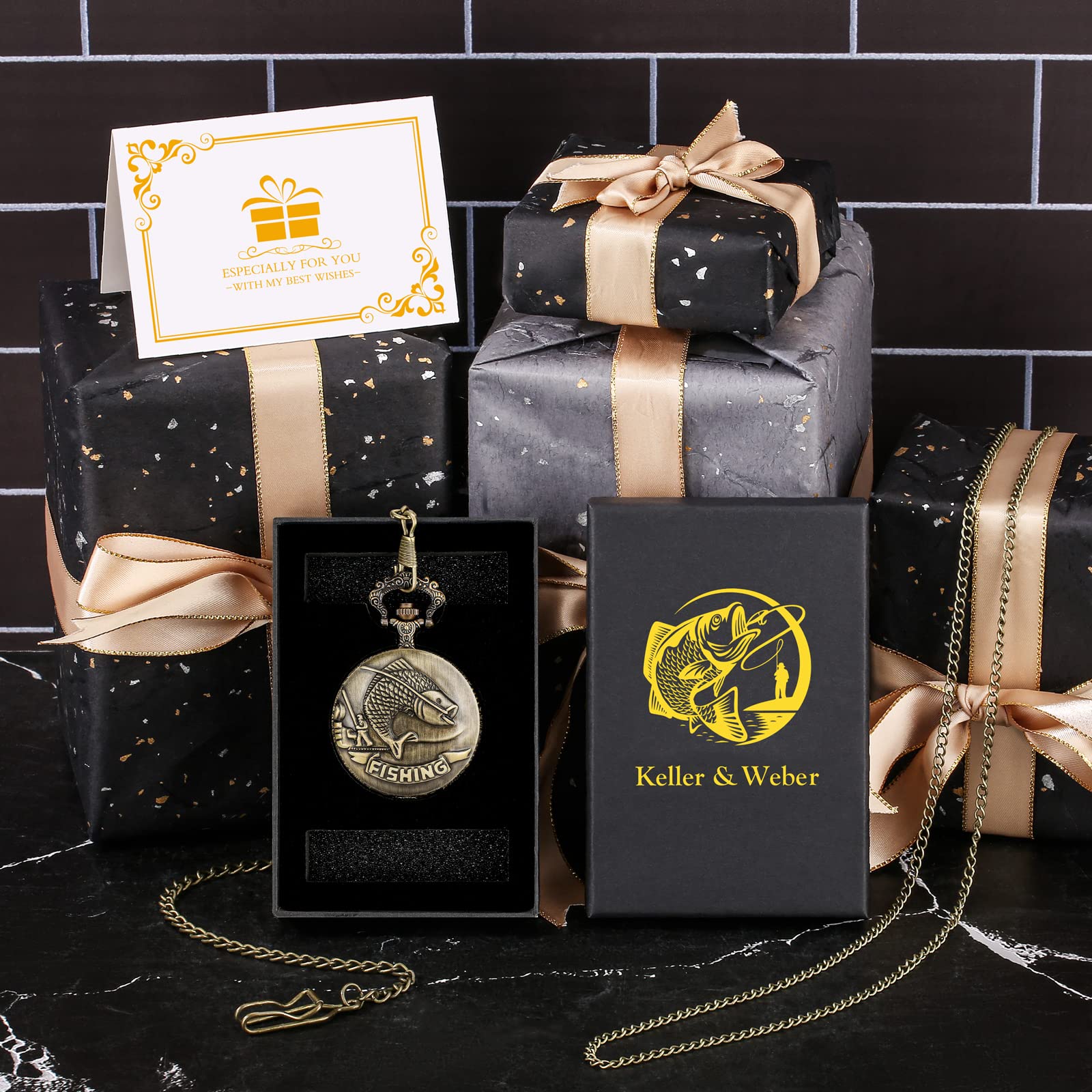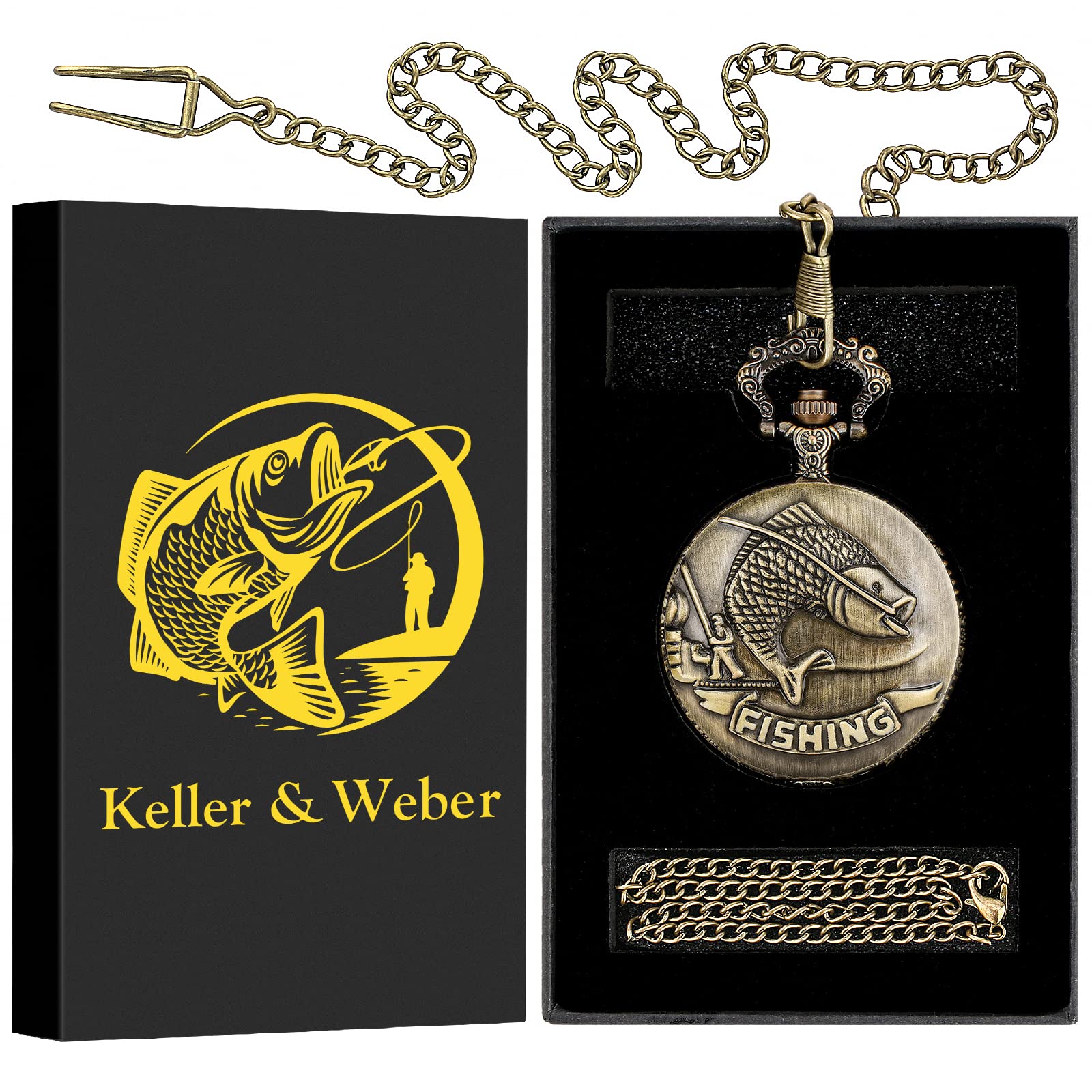 - Keller & Weber Vintage Fishing Pocket Watches for Men | FOB Pocket Watch with Chain -