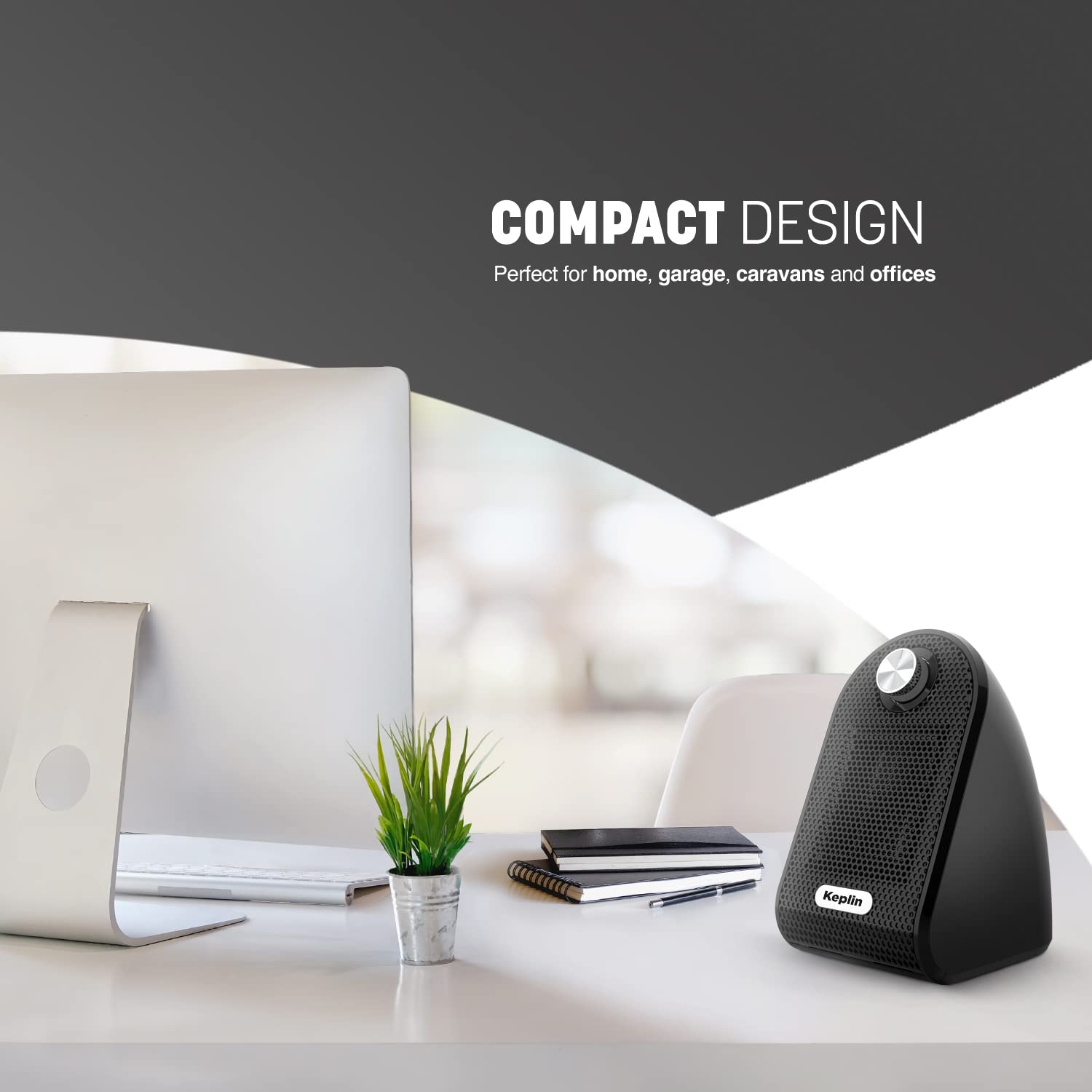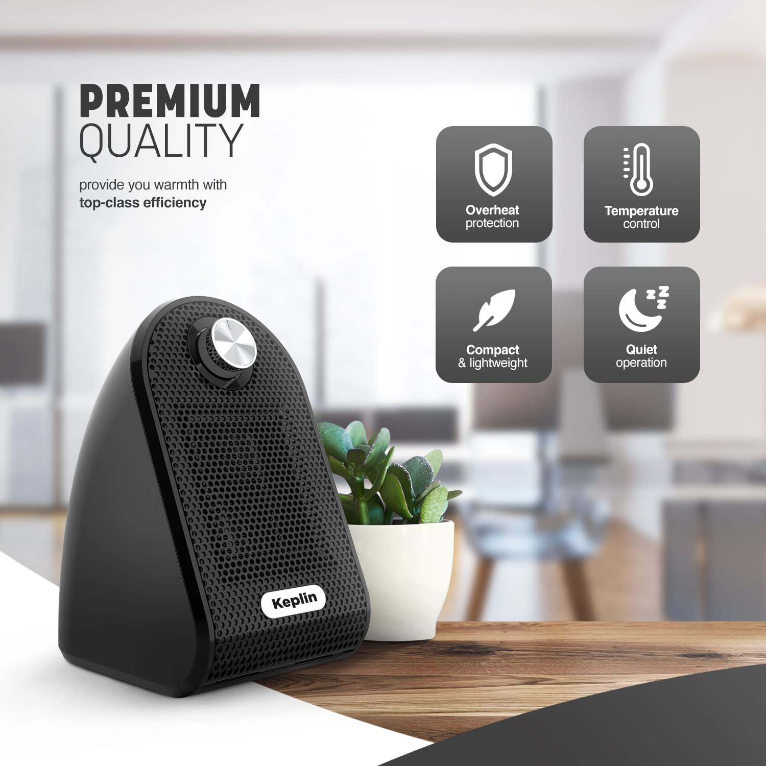 - KEPLIN Black Ceramic Desk Heater | 500W Low Energy Consumption | Silent Heater -