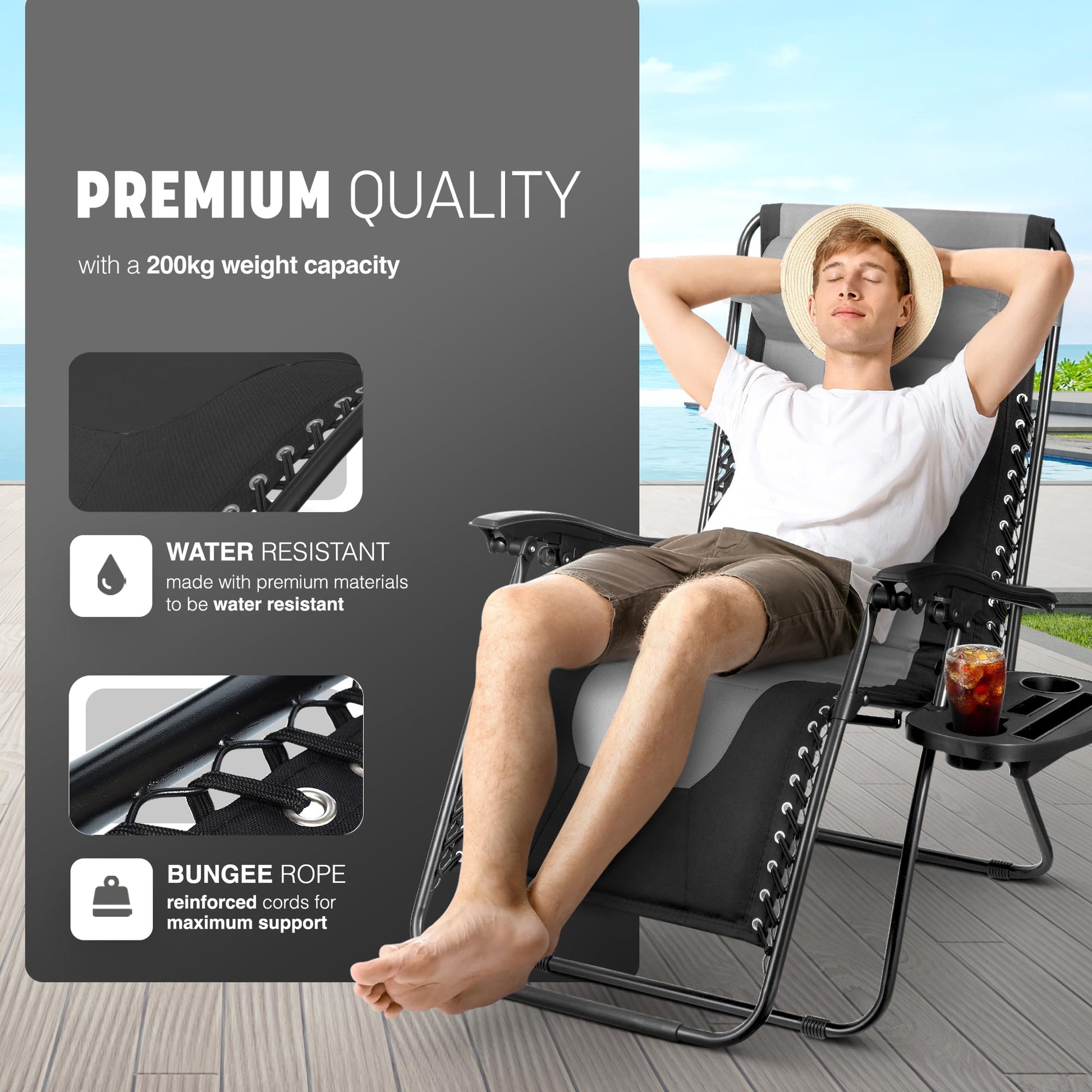 - KEPLIN Set of 2 XXL Premium Heavy Duty Textoline Zero Gravity Chairs | Luxurious Garden Recliners | Adjustable Headrest -