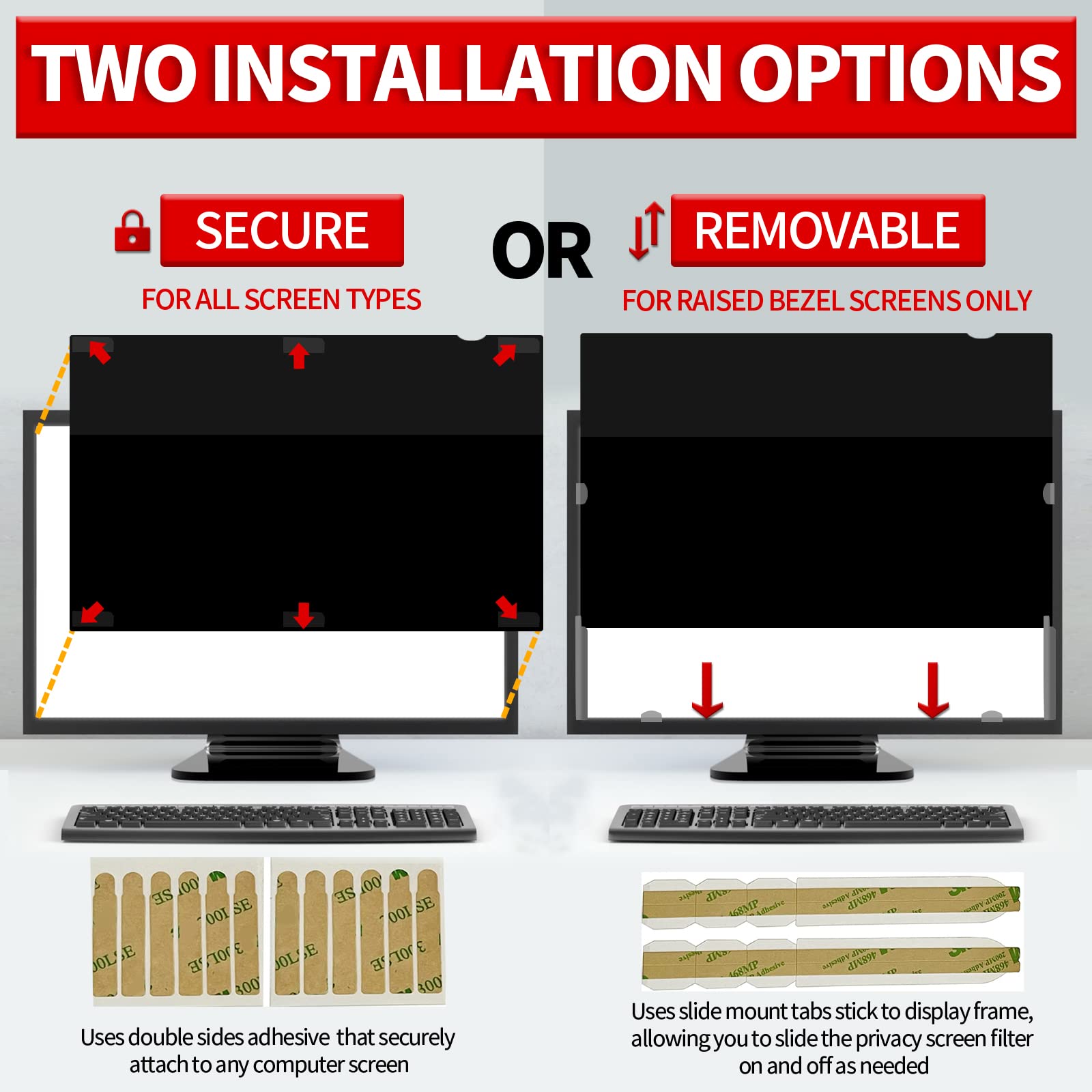 - Two Easy Attachment Options – Choose between adhesive strips for a secure fit or slide mount tabs for easy removal when needed.