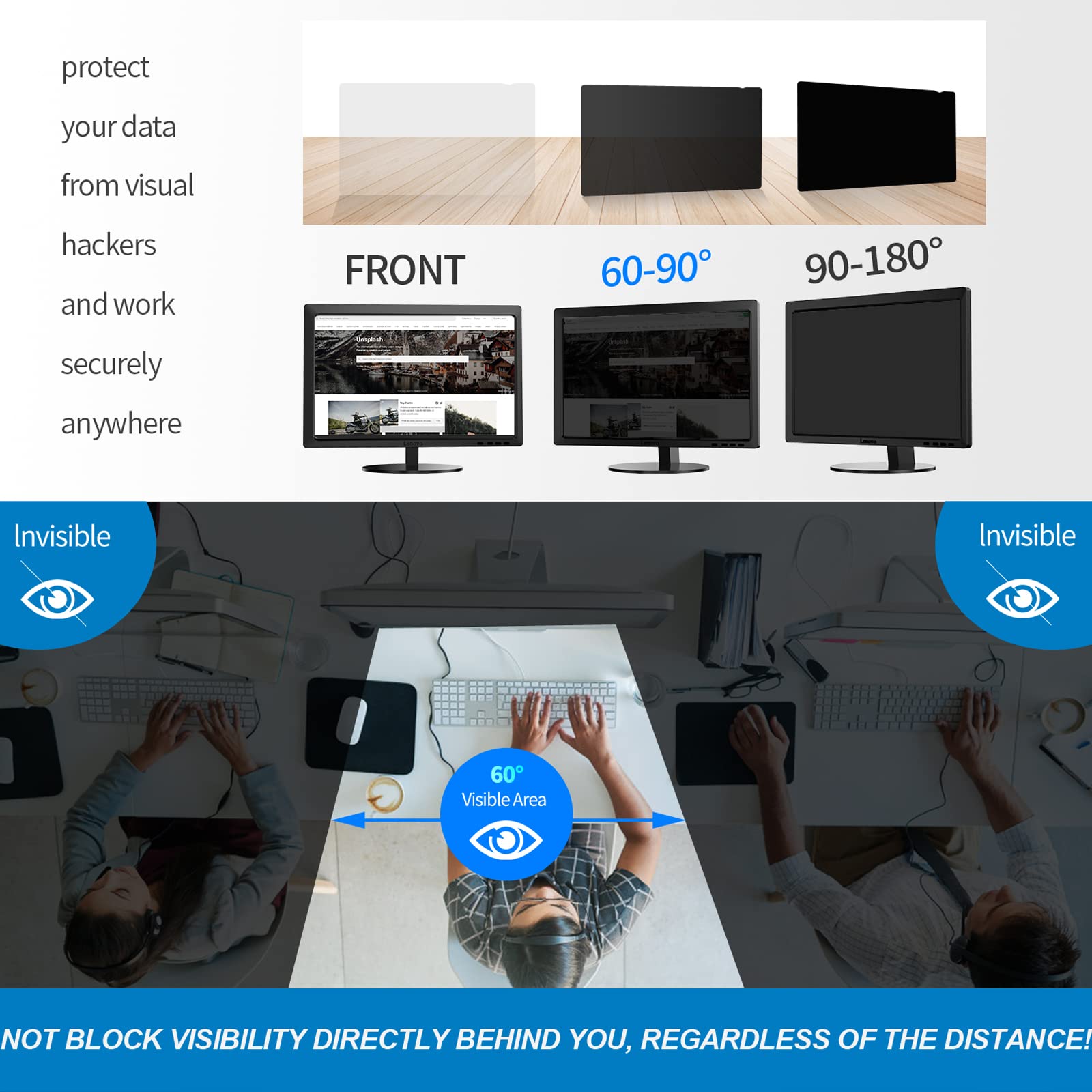 - Privacy Protection – Limits side viewing outside a 60-degree angle, keeping personal and business information safe.
