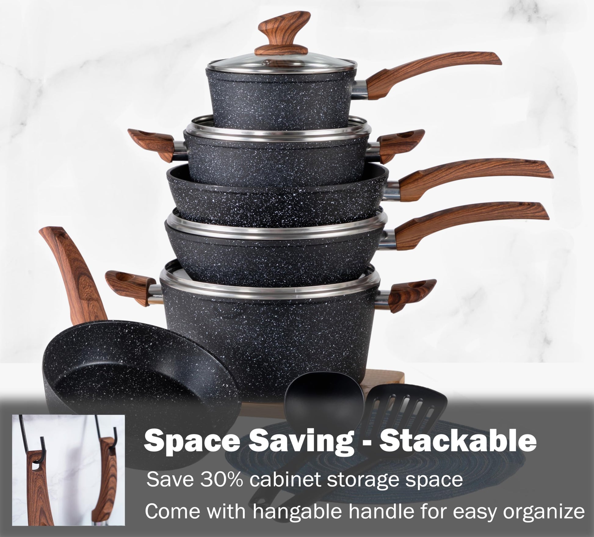 Kitchen Academy 12-Piece Induction Cookware Set – Nonstick Granite Coating for Healthy Cooking