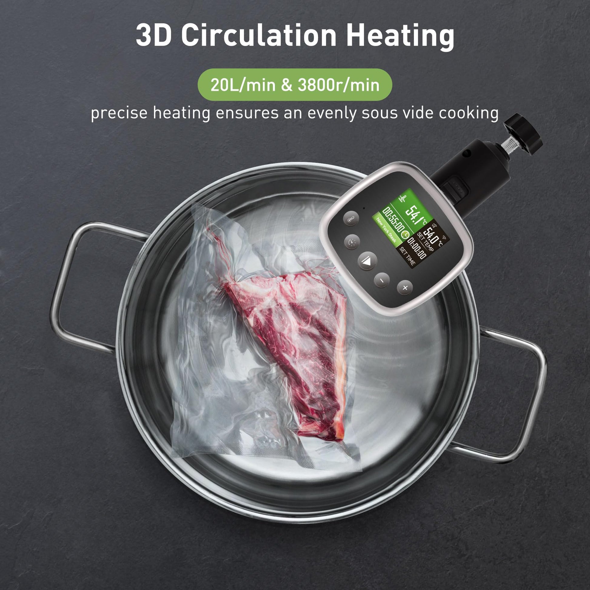 - Stainless Steel & Waterproof Construction: Made with food-grade stainless steel and featuring an IPX7 waterproof rating, this sous vide cooker is built for durability and easy cleaning.