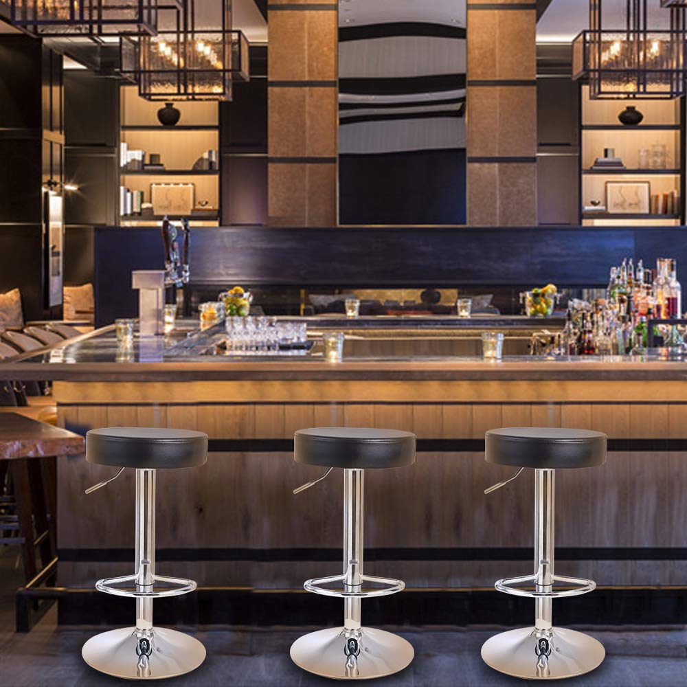 - KKTONER Round Bar Stool | PU Leather with Footrest | Height Adjustable | Swivel Pub Chair -