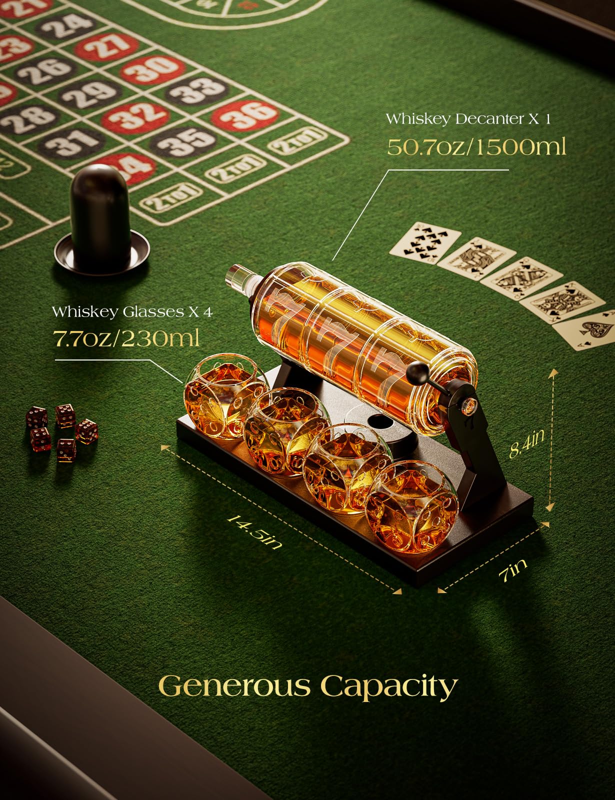 - Kollea Slot Whiskey Decanter Sets | 50.7 Oz Whiskey Decanter Set | 4 Glasses | Casino Style Decanter -