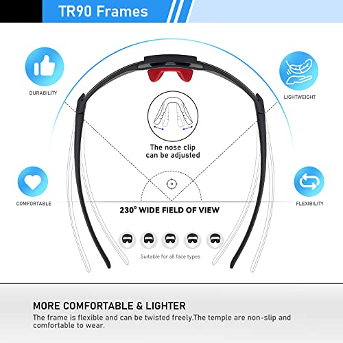 - High-Quality Accessible Frame: Experience a panoramic view with a large, stylish frame that offers complete coverage while maintaining comfort. The lightweight, ultra-sleek frame reduces pressure on your nose and ears for a more enjoyable experience during long rides.