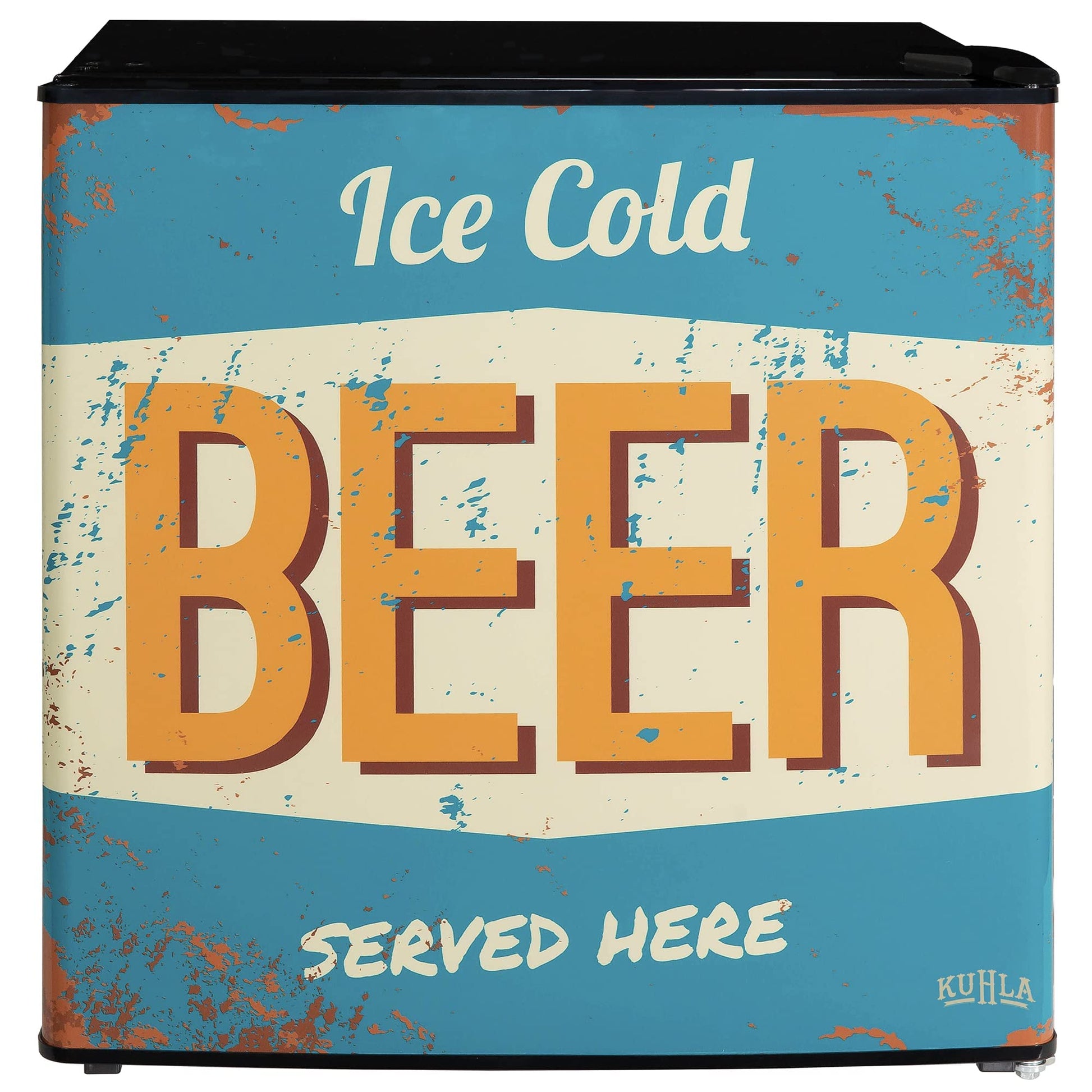 Add some fun and function to your home with the Kuhla Ice Cold Beer Mini Fridge. Featuring a cool vintage beer design, this compact yet surprisingly spacious fridge is perfect for keeping your favorite drinks and snacks chilled. Whether you place it in your kitchen, office, dorm, or home bar, this fridge makes a stylish statement while offering practical storage for up to 42 cans.
