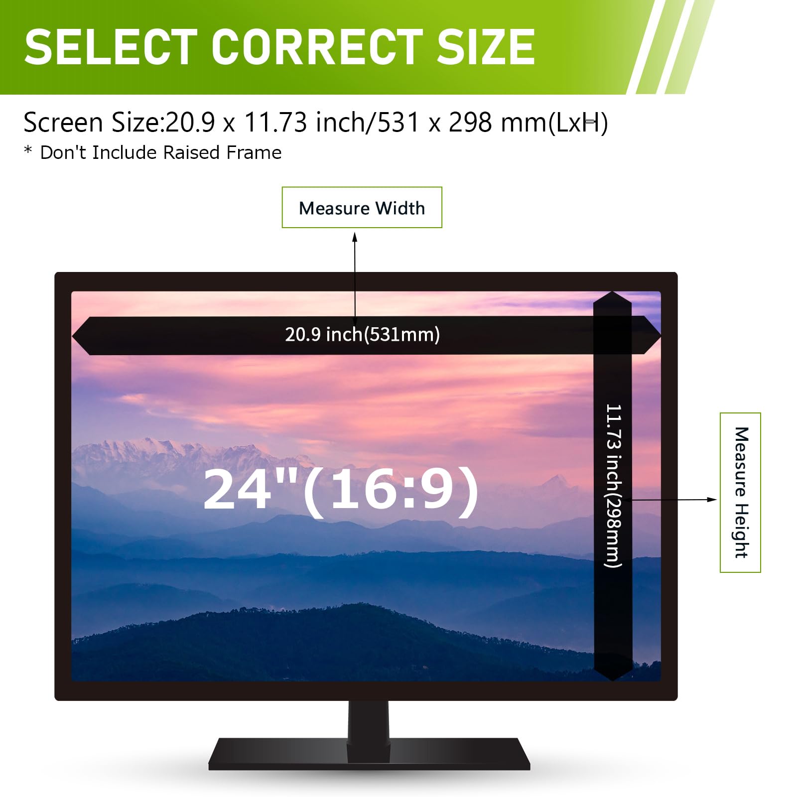 - Perfect Fit for 24-Inch Screens: Designed for widescreen monitors with a 16:9 aspect ratio (531mm x 298mm / 20.9" x 11.73"). Make sure to measure before ordering.
