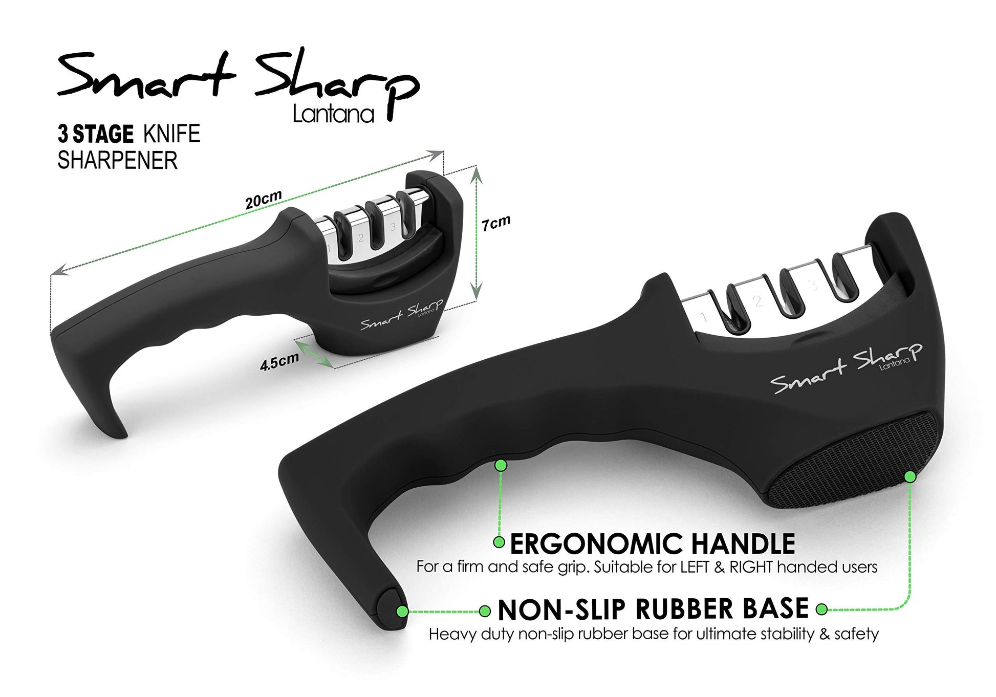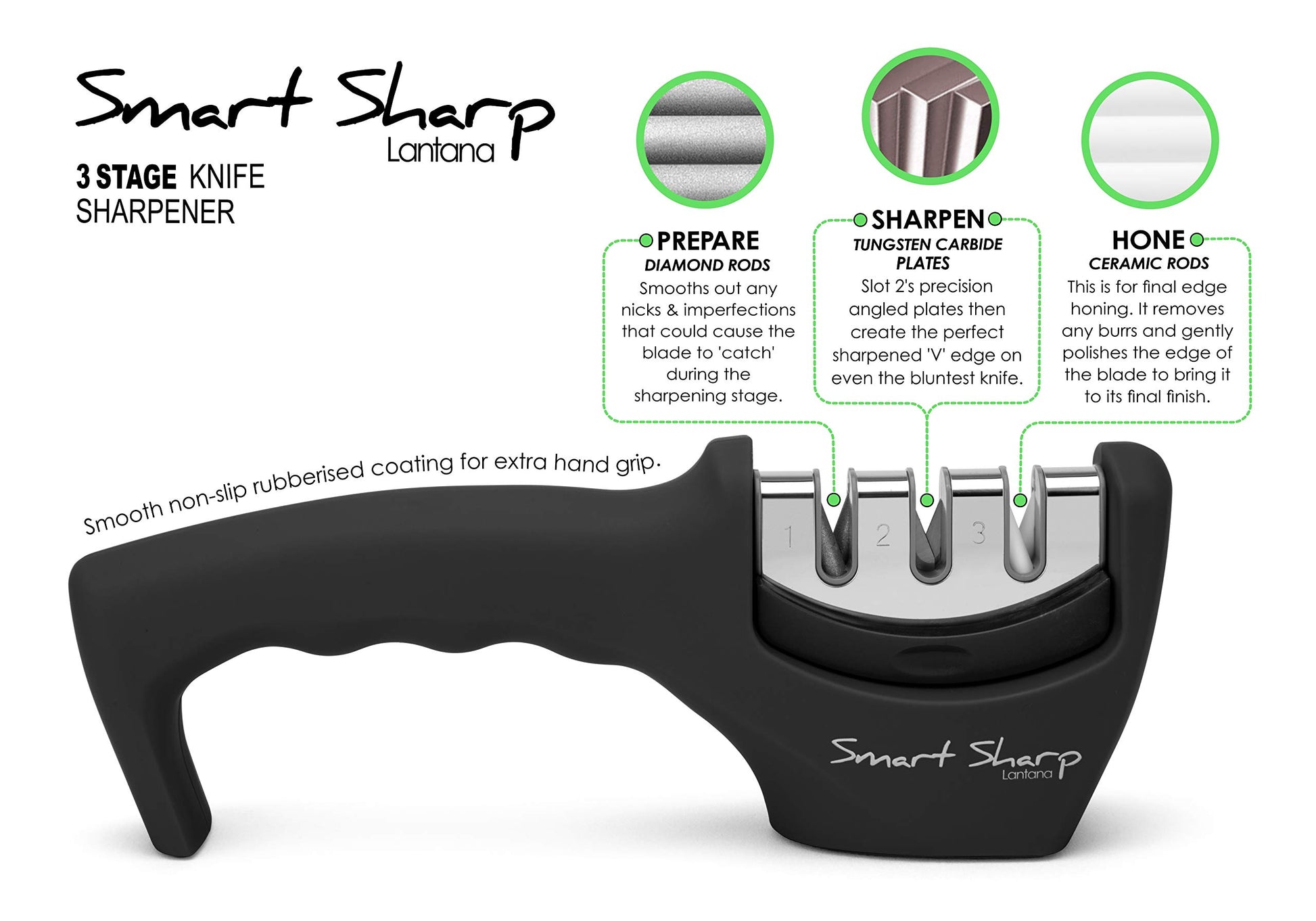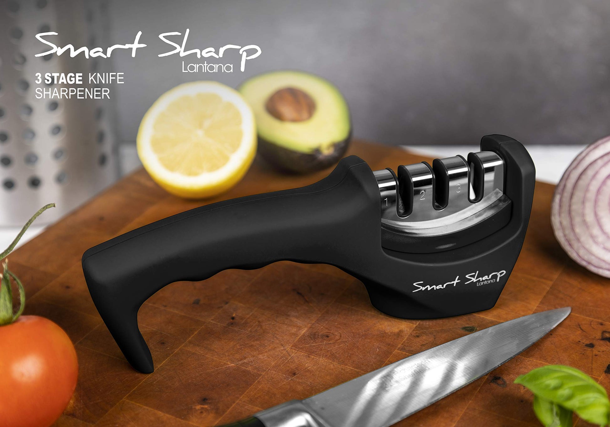 - Lantana Smart Sharp Knife Sharpener | Professional 3 Stage Manual Sharpener For Sharpening Kitchen Knives -