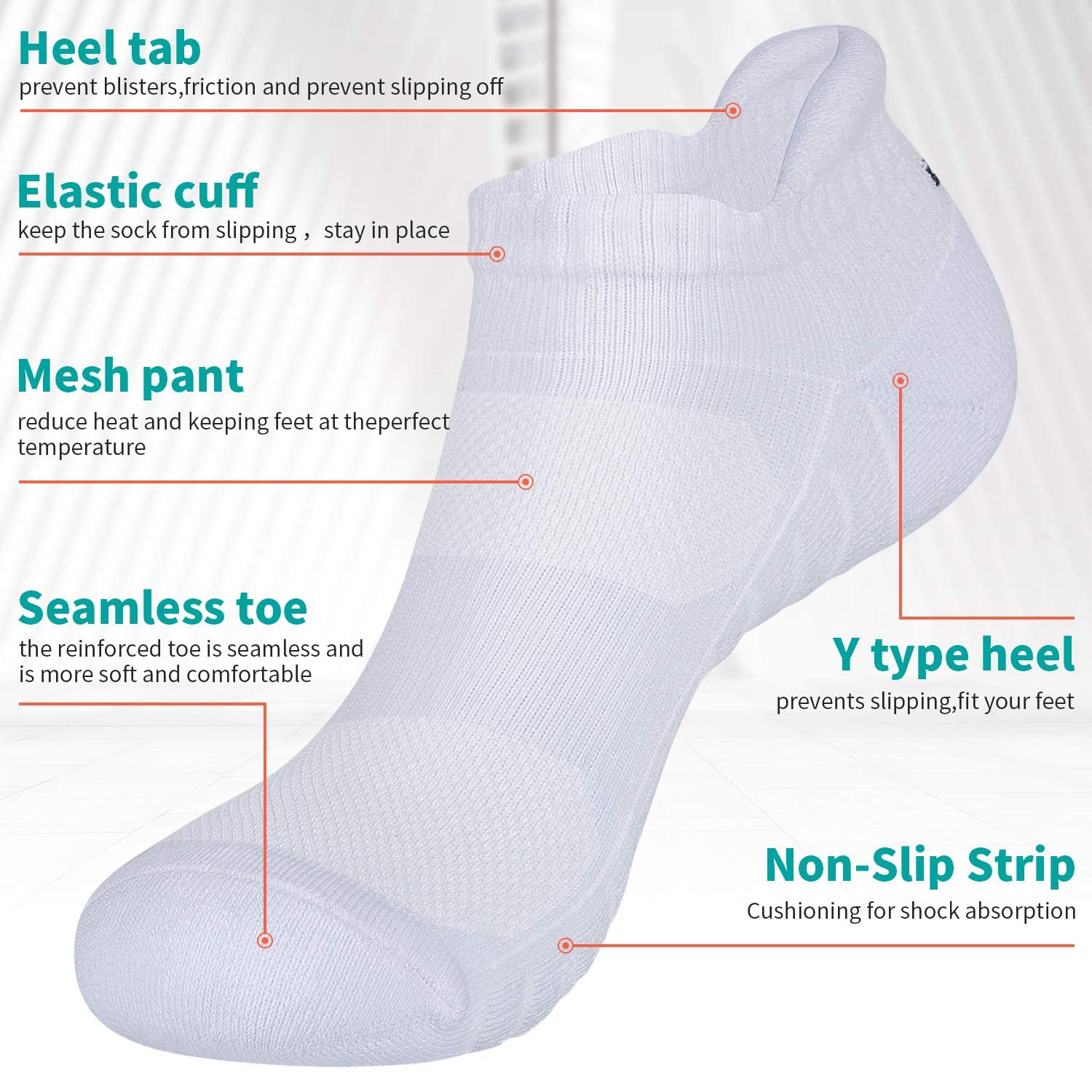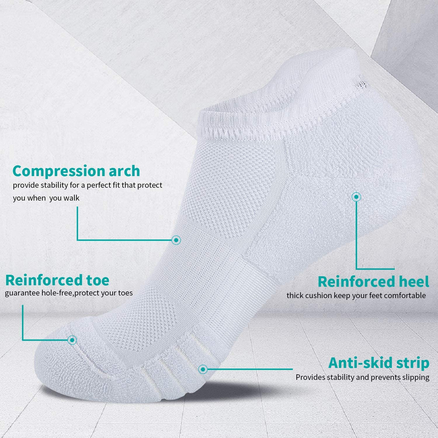 - Anti-Blister Cushioning: Extra-soft plush cushioning at the heel and forefoot areas provides additional comfort. The heel tab prevents shoes from rubbing against your ankle, protecting you from blisters and keeping the socks in place.