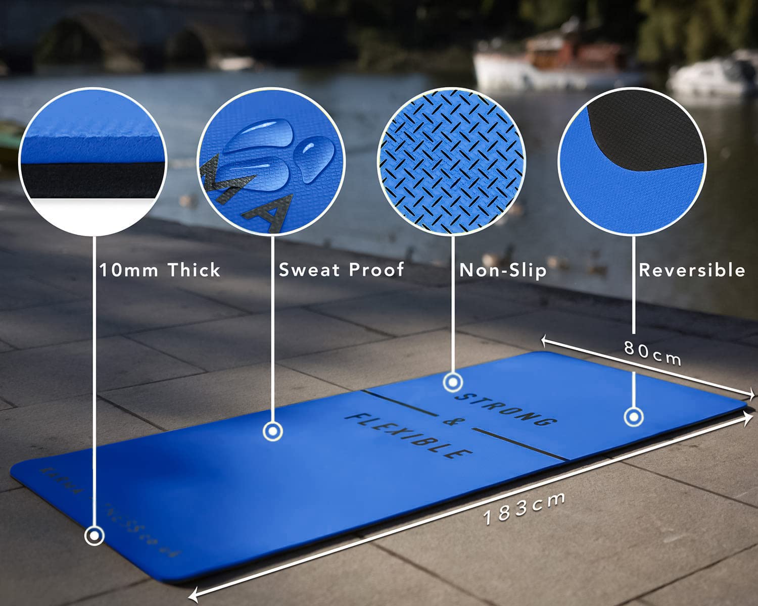 - Large Exercise Mat | Extra Wide & Extra Thick Yoga Mat (183cm x 80cm x 10mm) -