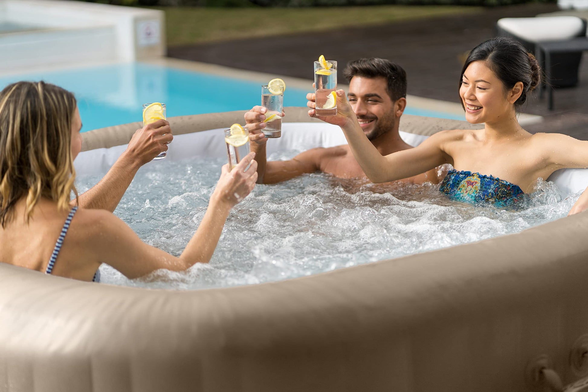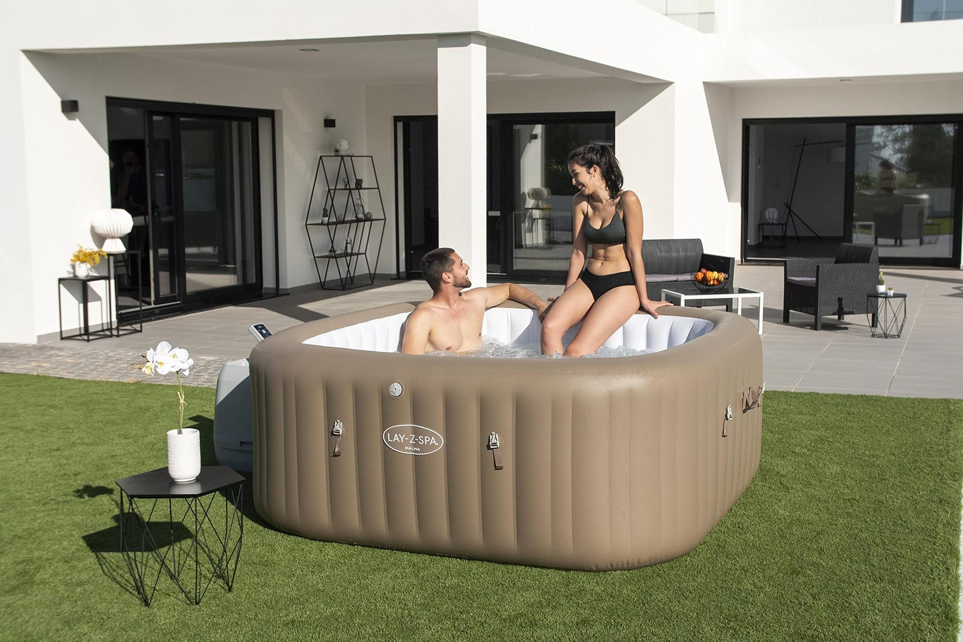 - Lay-Z-Spa Palma Luxury Hot Tub | 8 HydroJet Pro Massage System | Inflatable Spa | LED Lights | Built-In Seats | Foot Massager | Freeze Shield Technology | 5-7 Person -