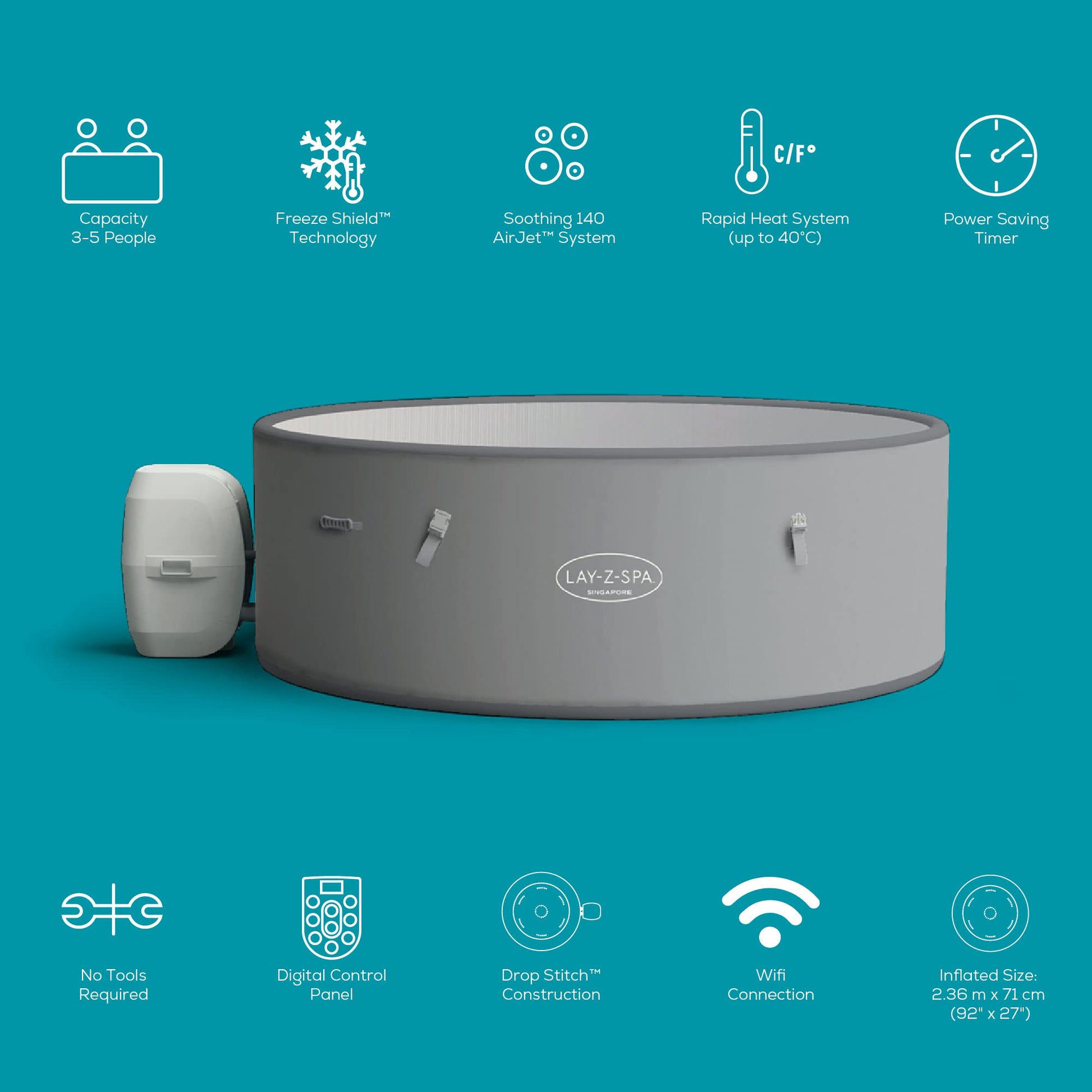 - Lay-Z-Spa Singapore AirJet Plus | AirJet Massage System | Drop Stich Inflatable Spa | FreezeShield | 3-5 Person -