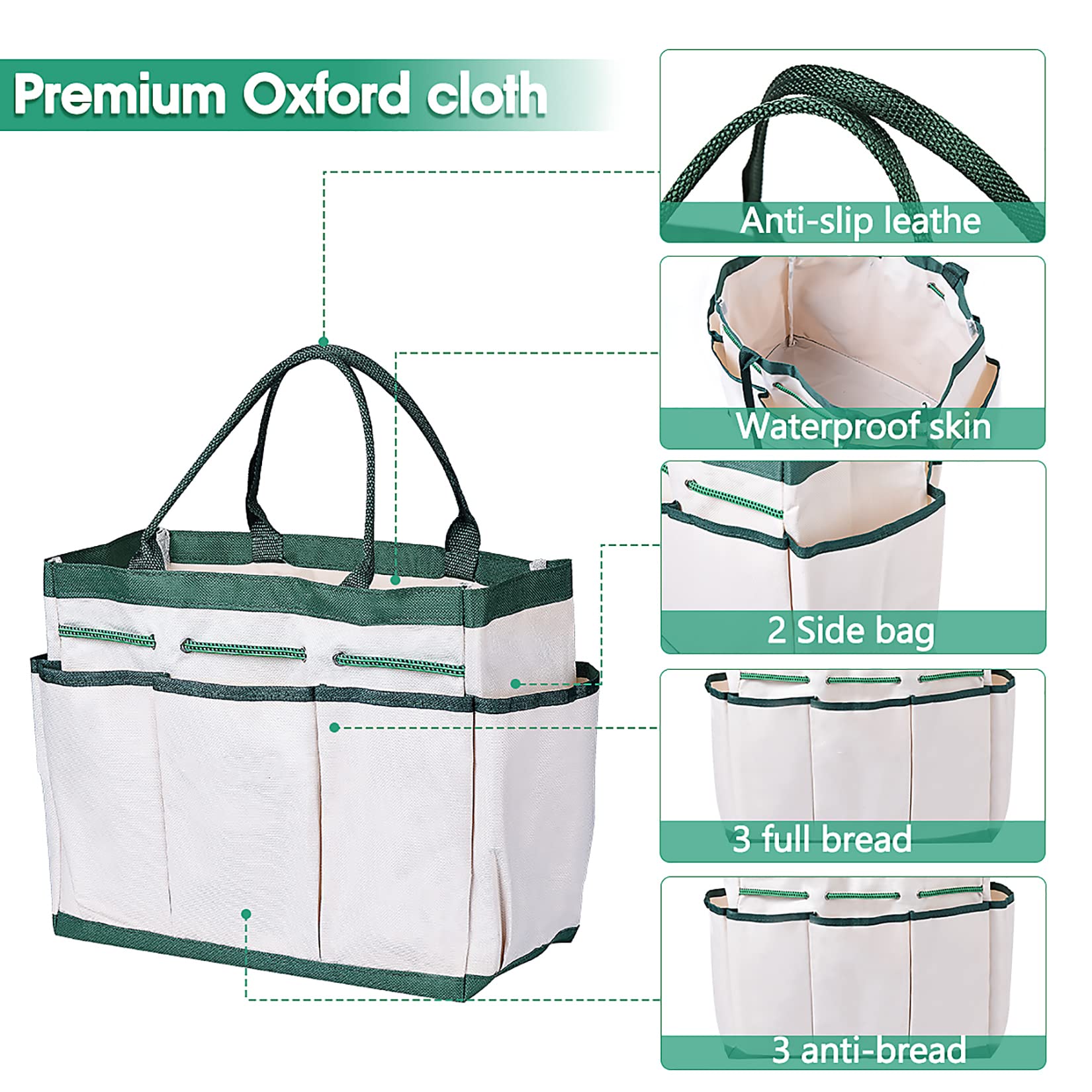 - Storage Bag: Waterproof 600D Oxford Fabric with 3 large pockets and 6 small pockets