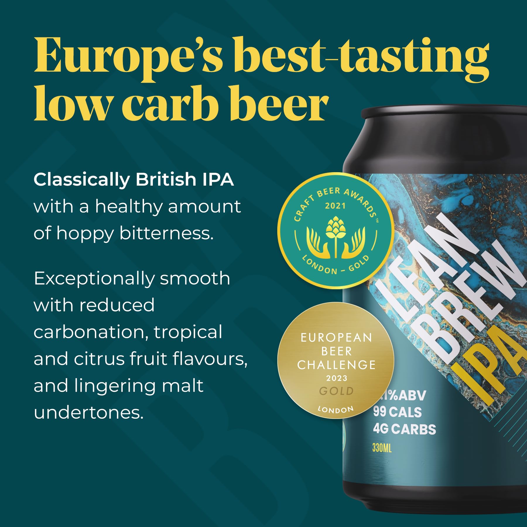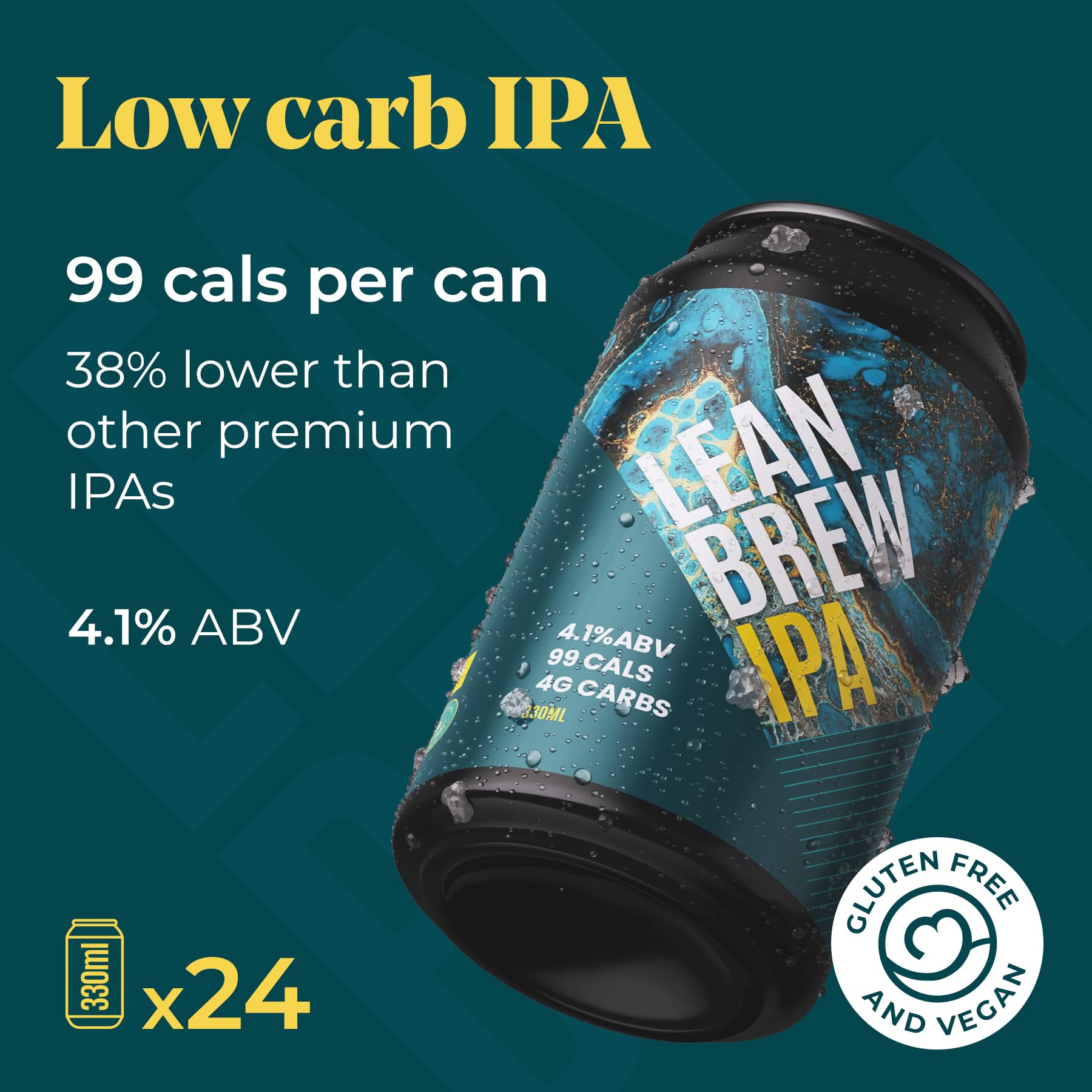 - LEAN BREW IPA | Gluten Free Beer | Low Carb Beer 24 Pack x 330ml Beer Cans -