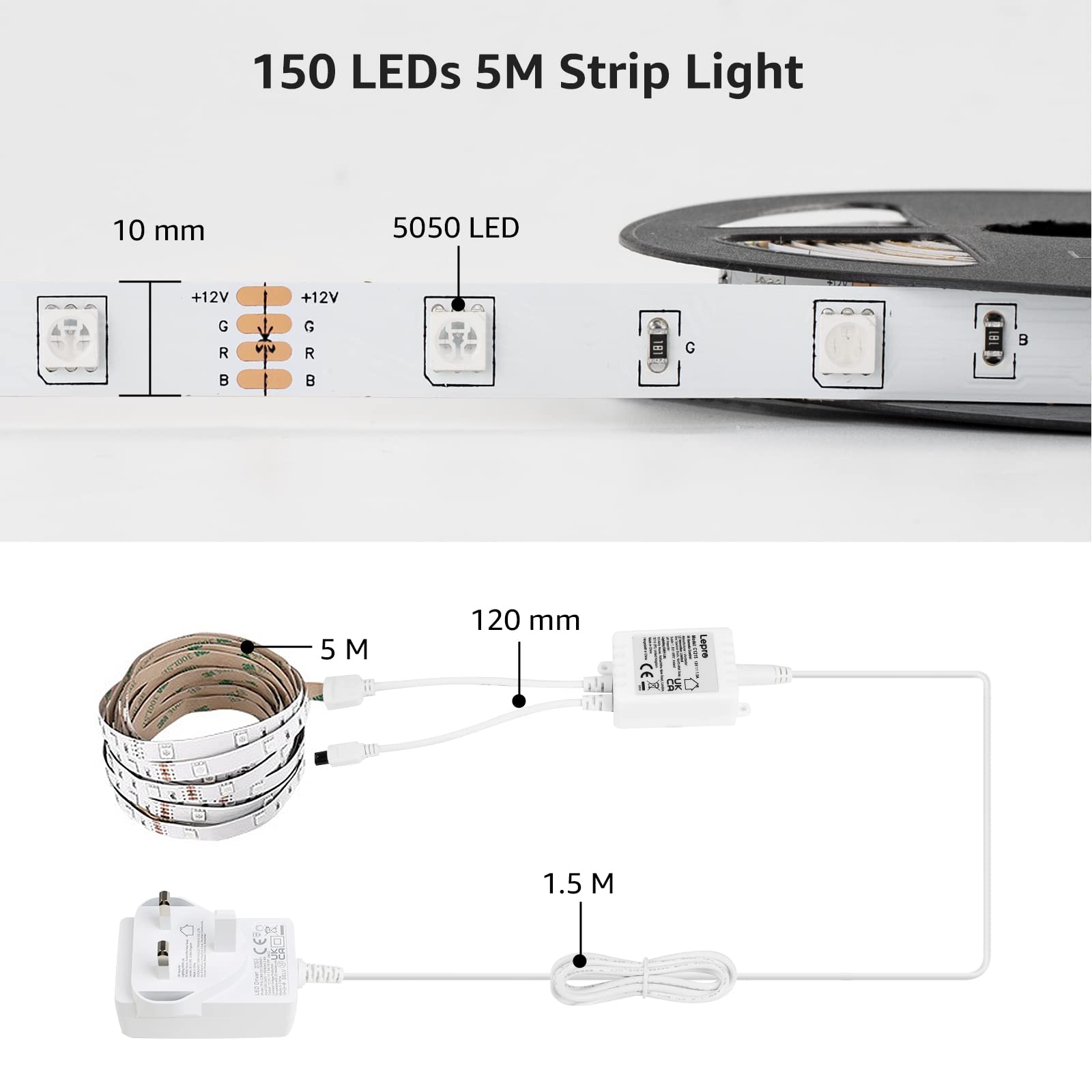 - Lepro LED Strip Light | 5M | Dimmable RGB LED Strips With Remote | Colour Changing Room Lights -