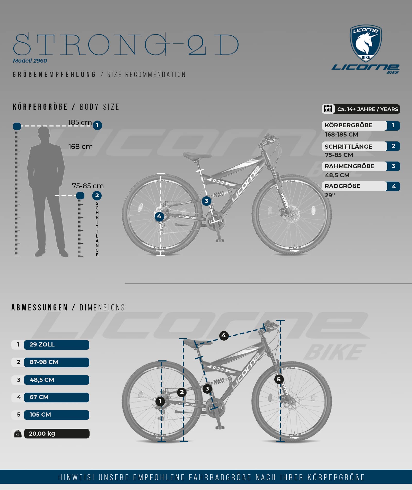 - Licorne Bike Strong D 29 Inch Mountain Bike Fully | Suitable from 150 cm | Front and Rear Disc Brake | Shimano 21 Speed Gears -