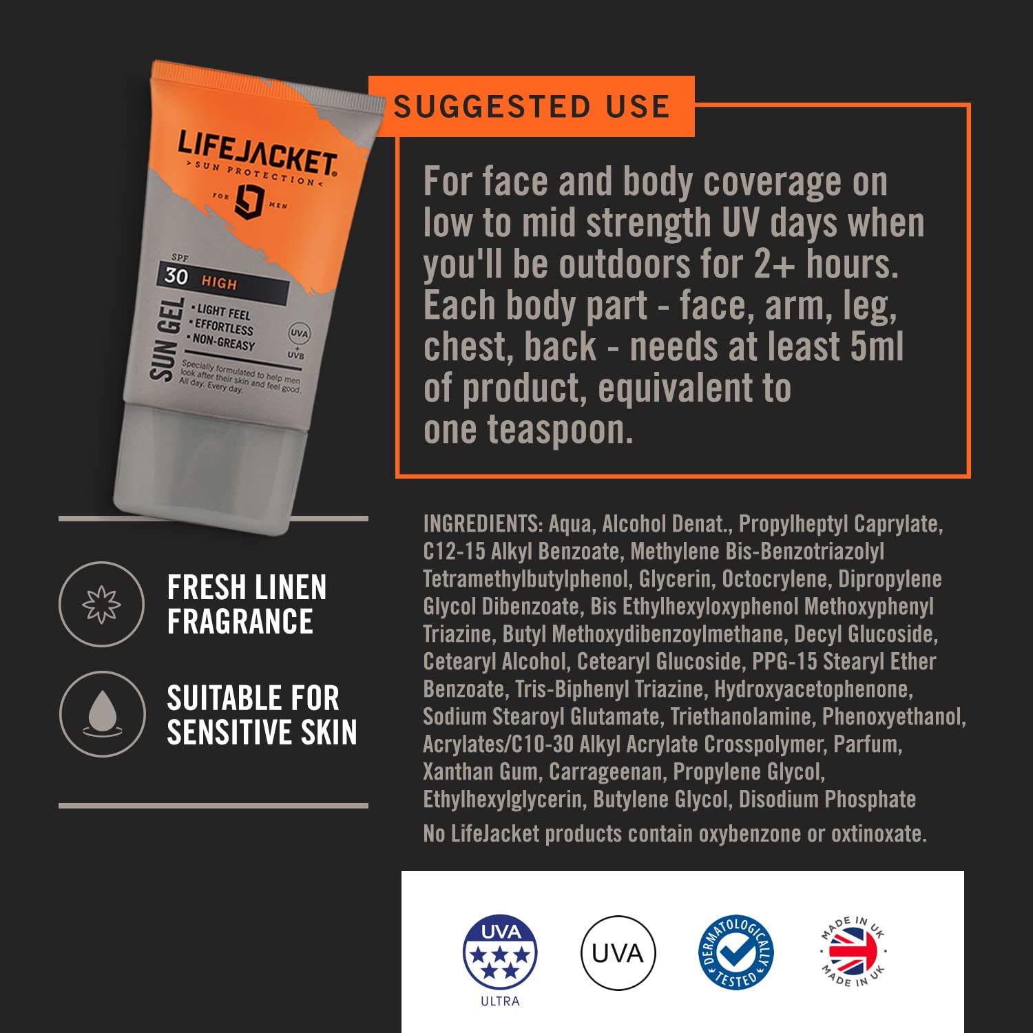 LifeJacket Men's SPF 30 Sun Cream Moisturiser Gel – 100ml