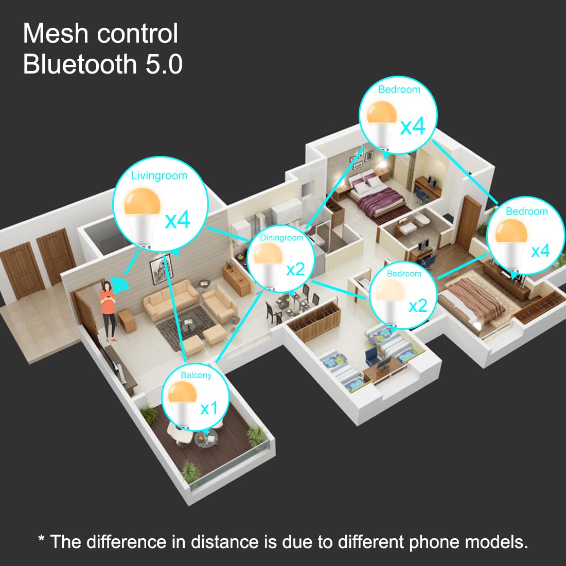 - Advanced Bluetooth 5.0 Connectivity: The bulb’s Bluetooth 5.0 chip allows for seamless auto interactions between multiple bulbs, enabling synchronized control for up to 125 bulbs.
