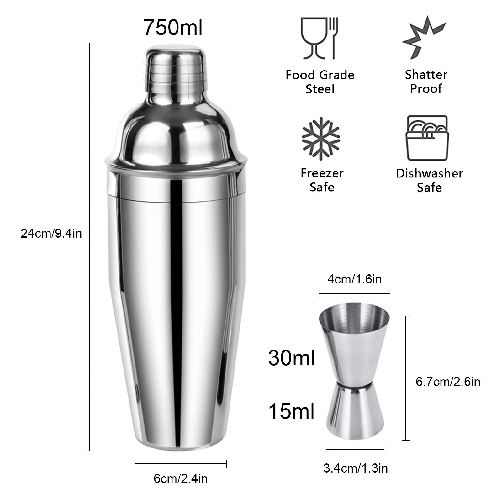 - Great Cocktail Shaker: 750ml (26oz) shaker, ideal for making 3-5 cocktails at once. Stylish mirror finish.