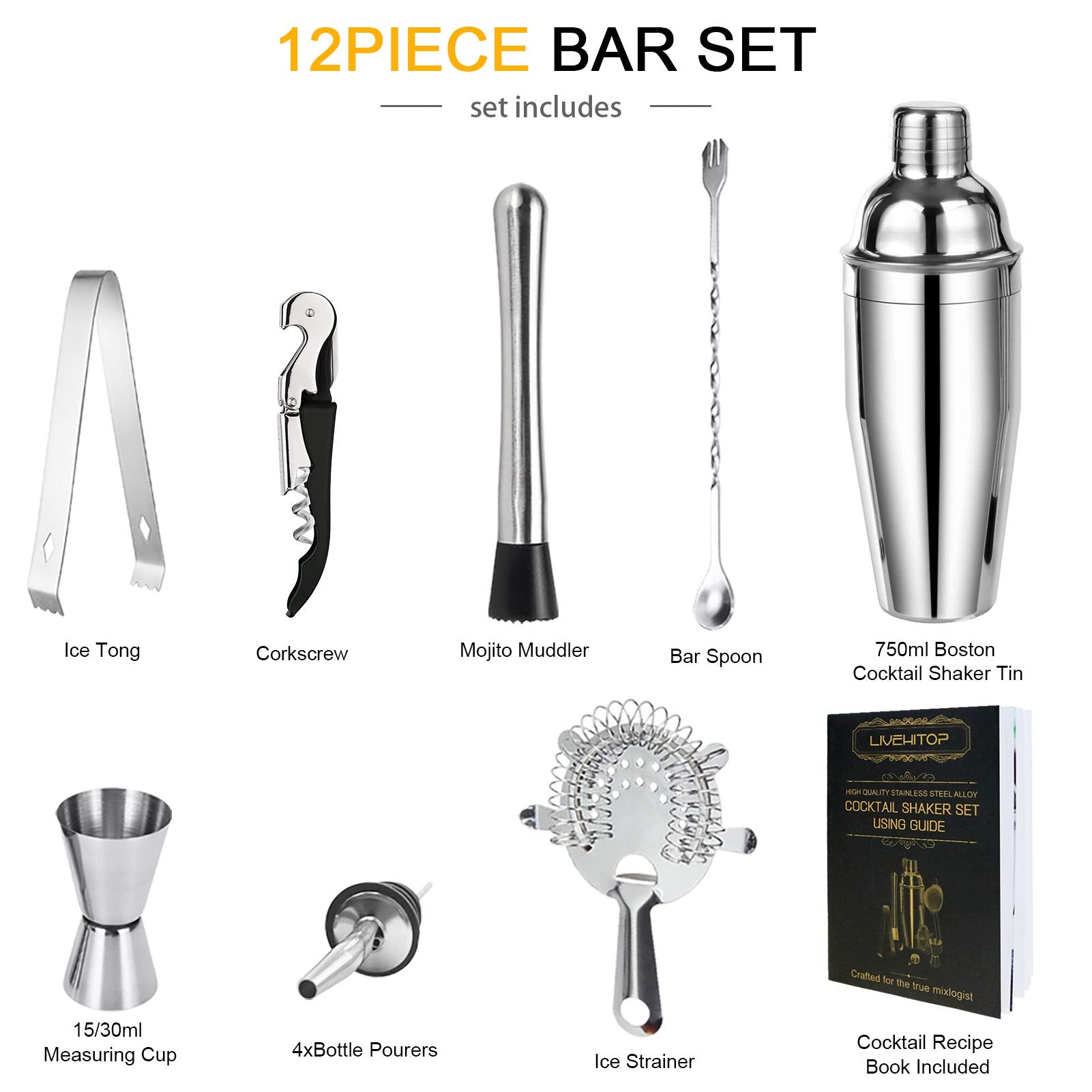 - LIVEHITOP Cocktail Shaker Set | 12 Pieces Cocktail Making Set With 750 ML Cocktail Shaker -