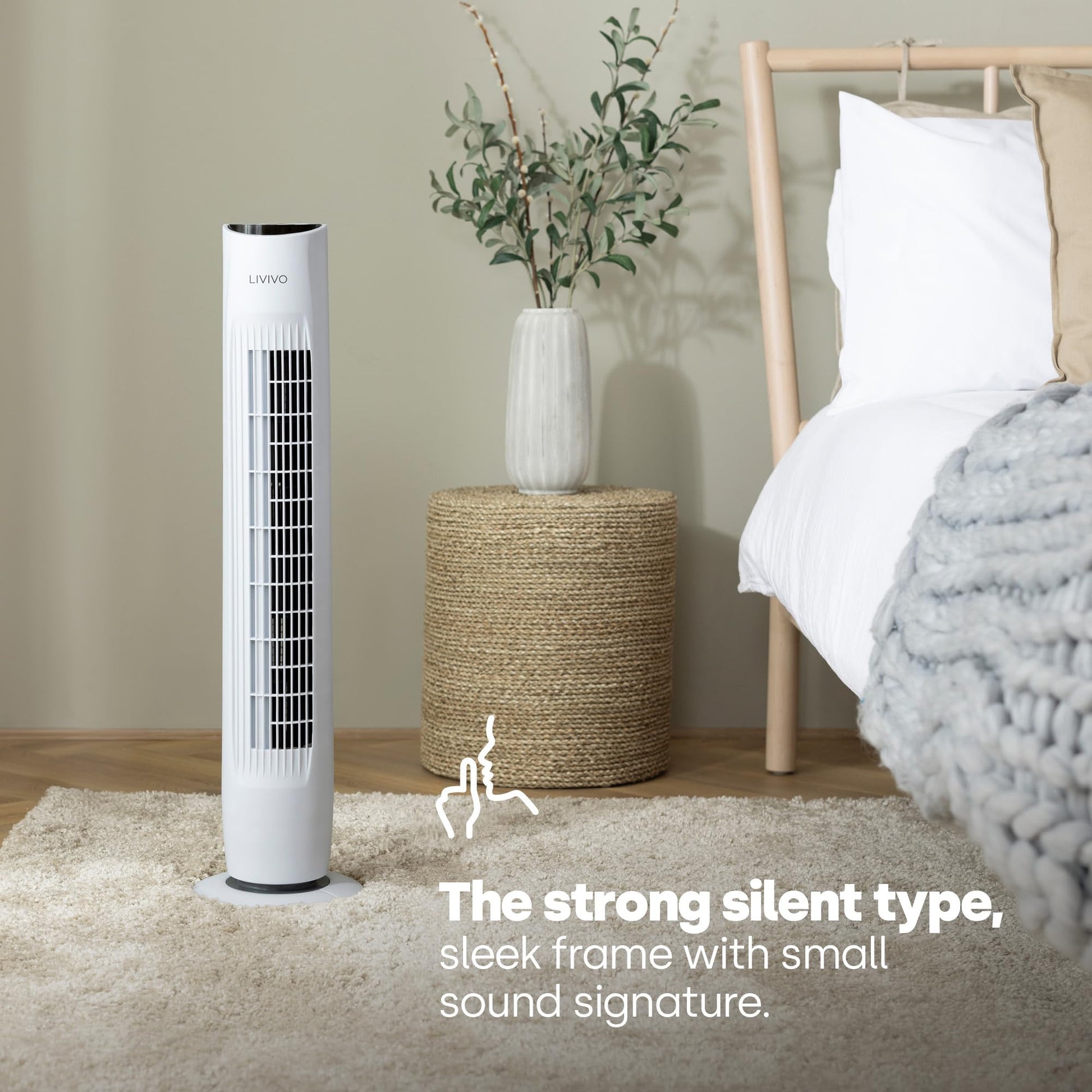 - LIVIVO 32" Tower Fan with Remote | Ultra Slim | Quiet and Powerful | Free Standing -