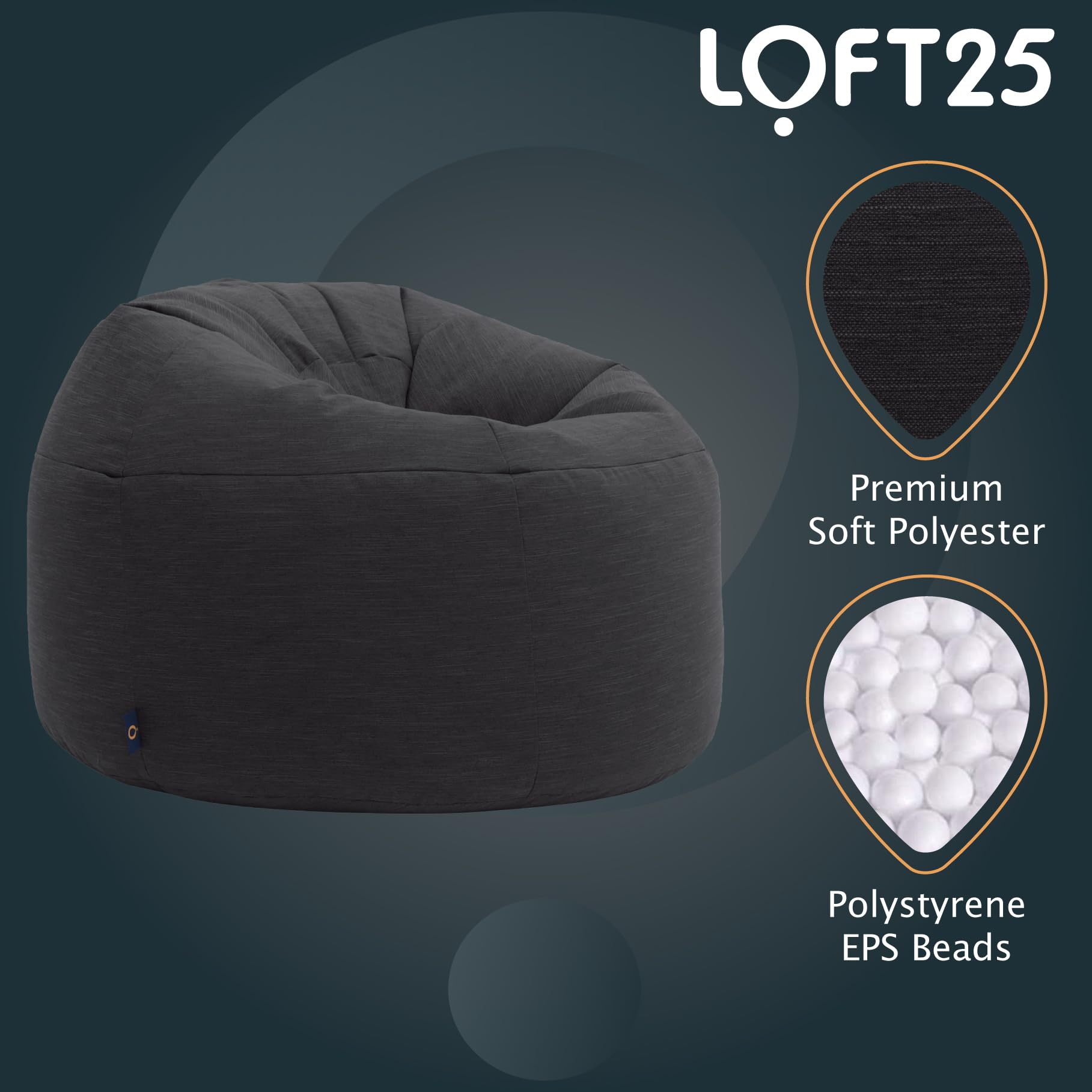 - Loft 25 Round Bean Bag Chair | Indoor Living Room Adult Gaming Beanbag | Lightweight Soft Touch Relaxing Sofa Seat -