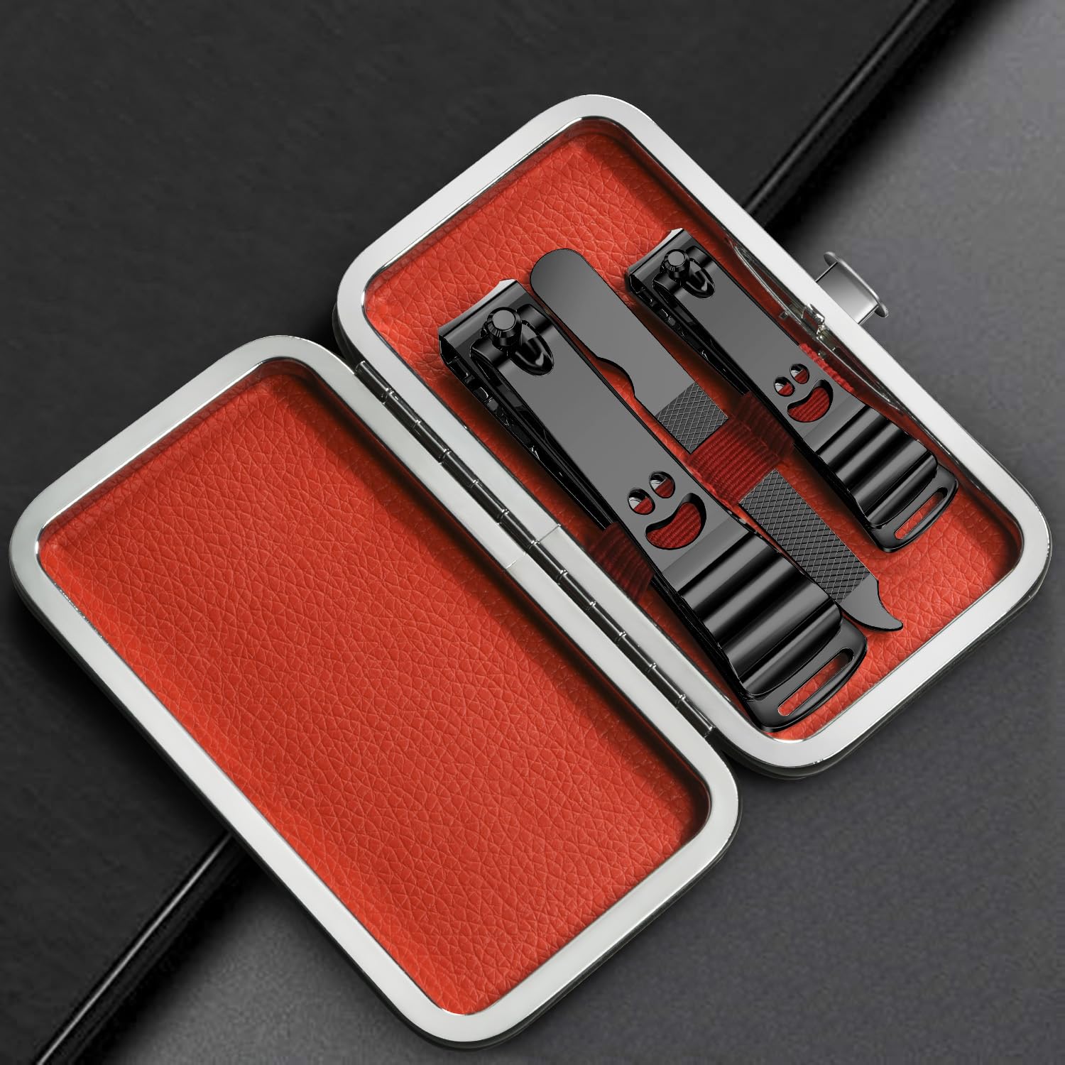 - Complete Nail Care Set: Includes 2 nail clippers, 1 independent nail file, and a convenient leather box for storage. This set is perfect for both fingernails and toenails, ensuring clean, tidy nails.