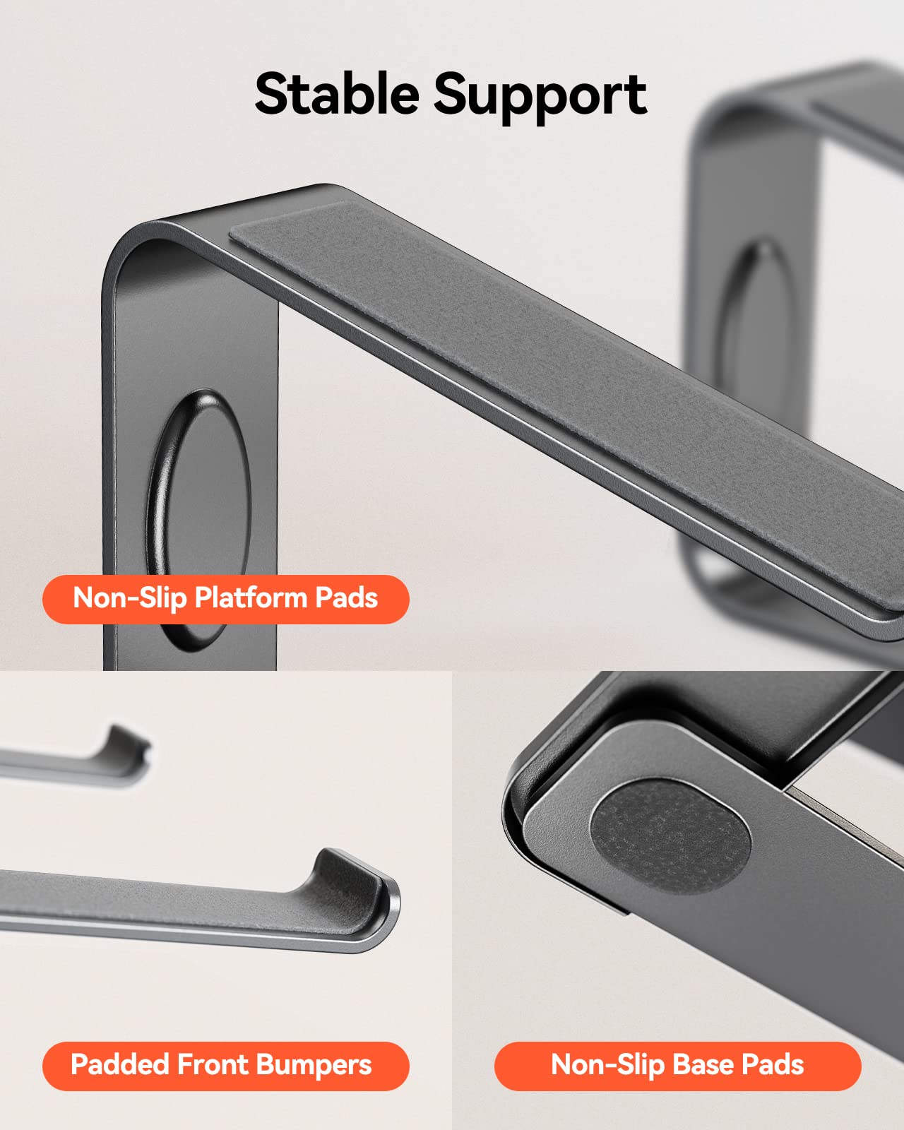 - Stable & Protective: Made from premium metal, supporting up to 8.8 lbs (4kg). Non-slip rubber pads keep laptops secure and scratch-free.