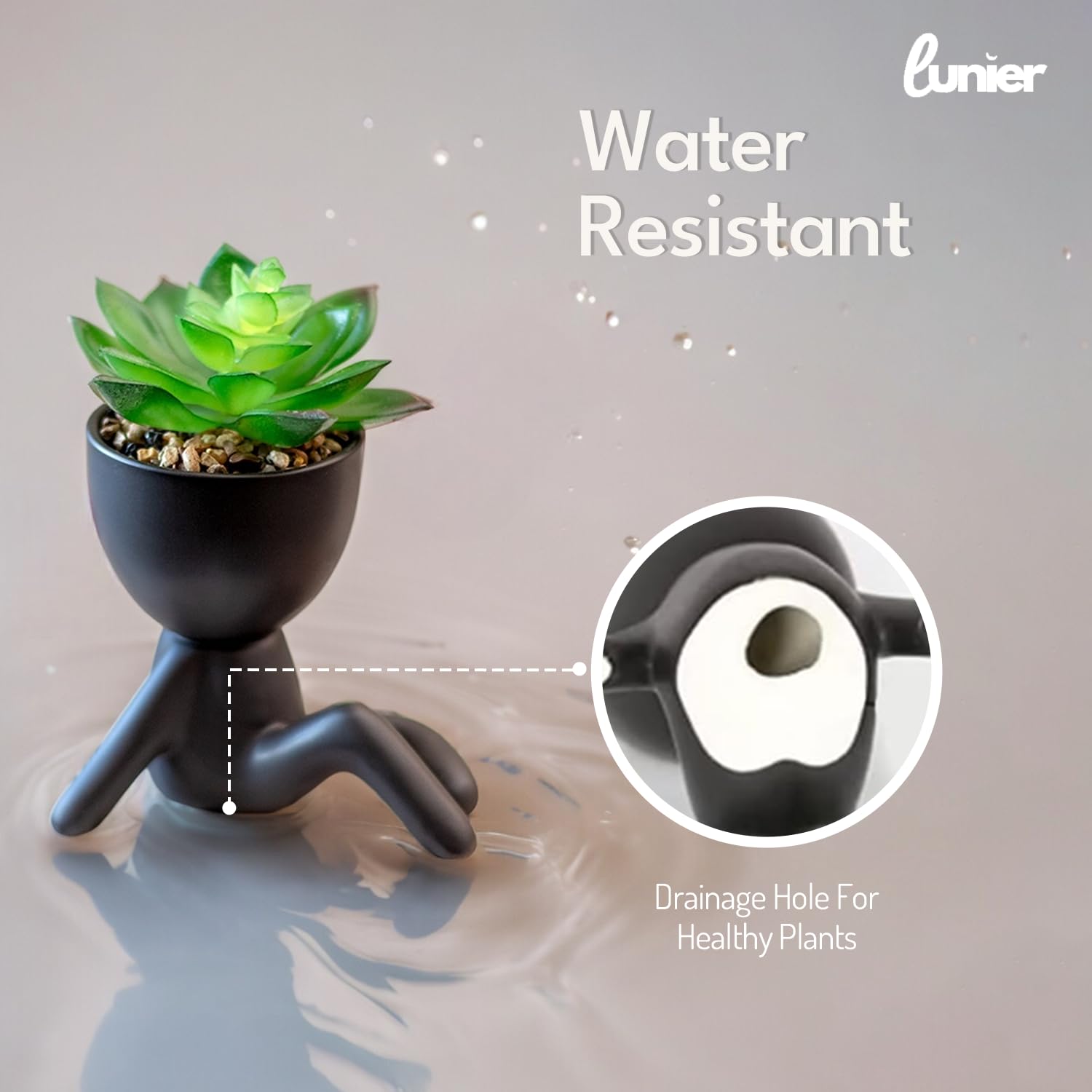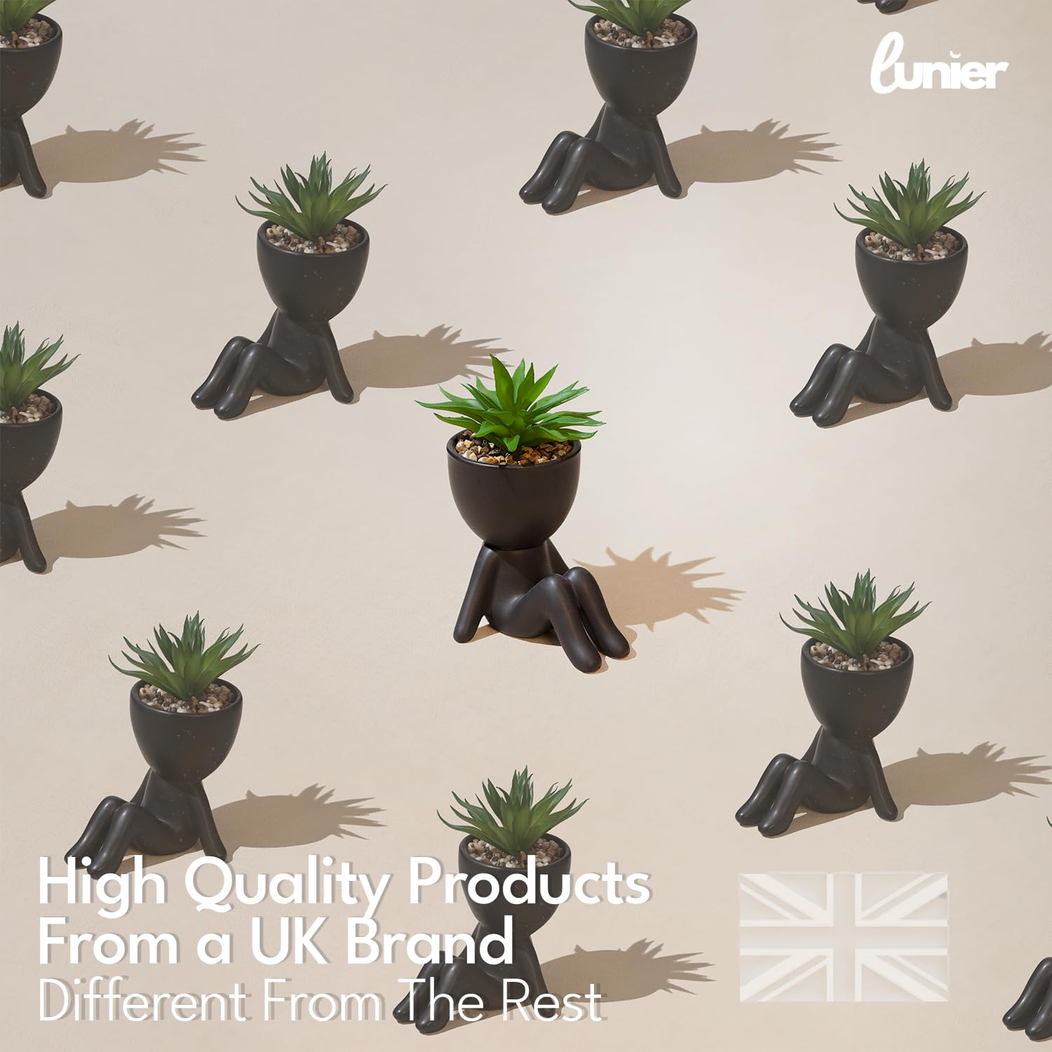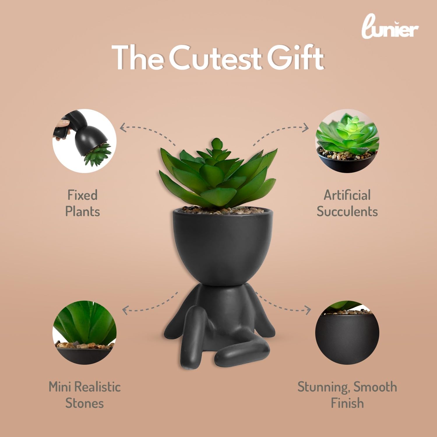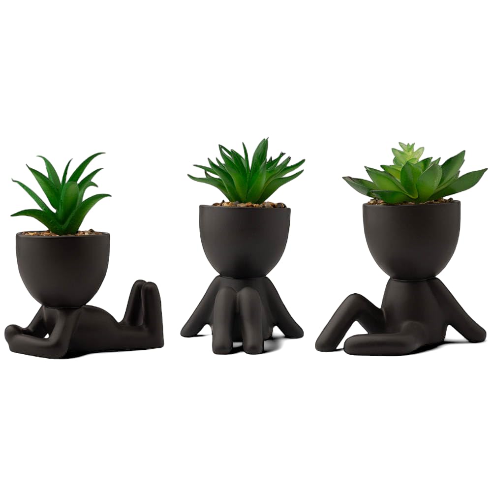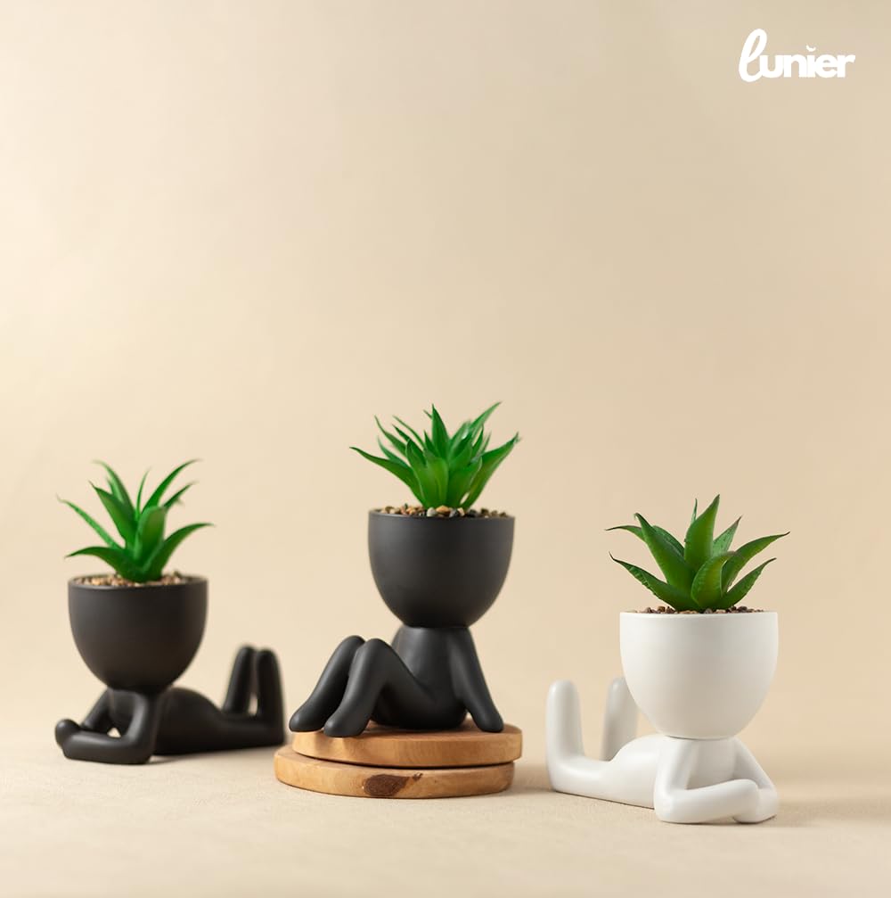 - LUNIER Seated Succulent Set (Set of 3) | Ceramic Human-Shaped Plant Pots With Artificial Succulent Plants –