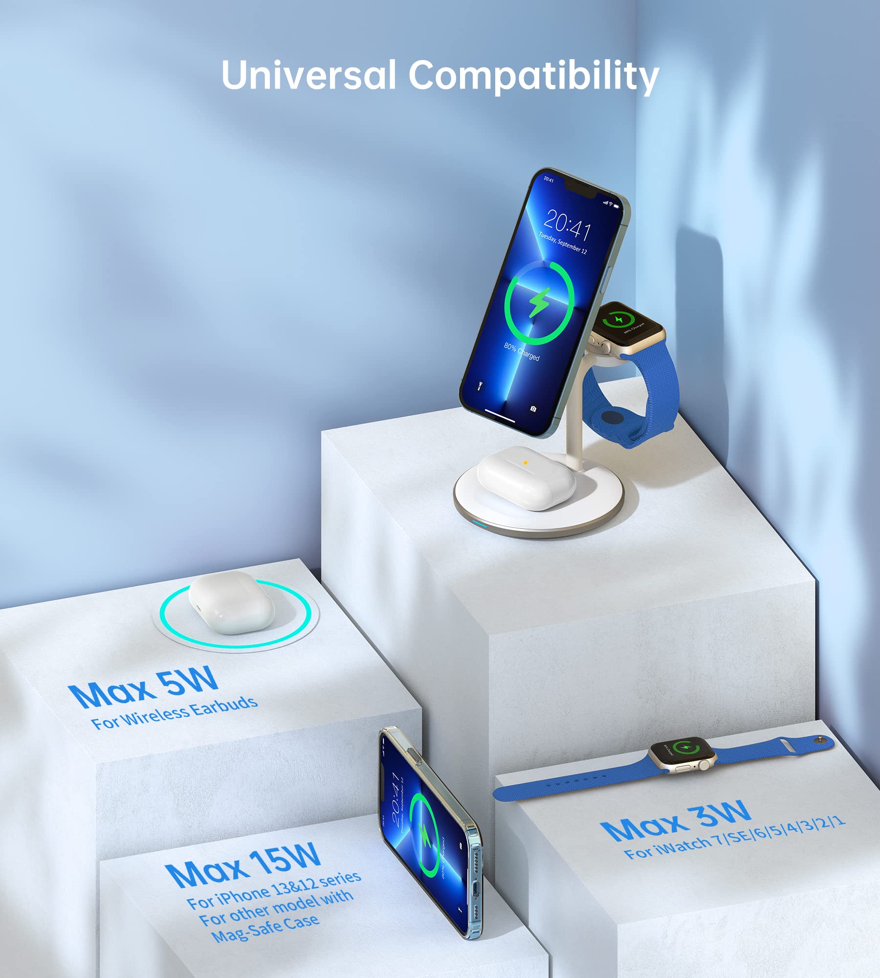- Mag-Safe Wireless Charger Stand | Upgrade 3 in 1 Magnetic Wireless Charging Station -