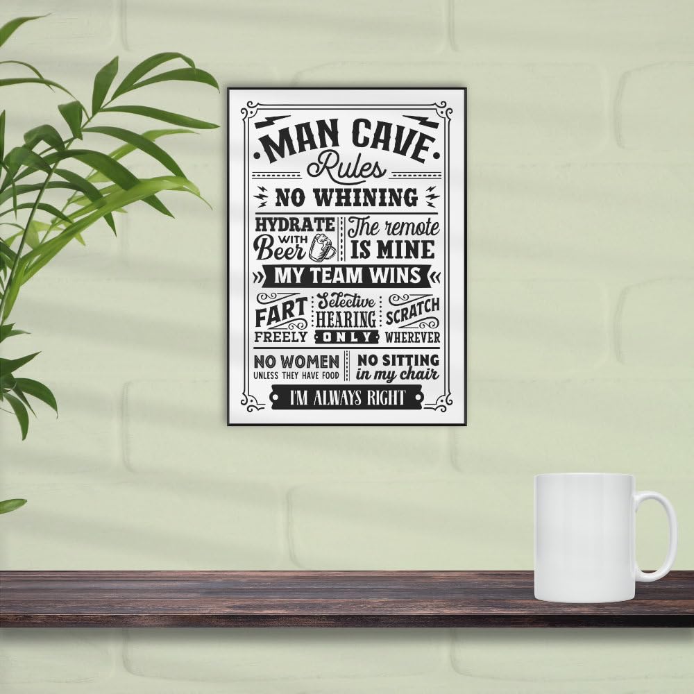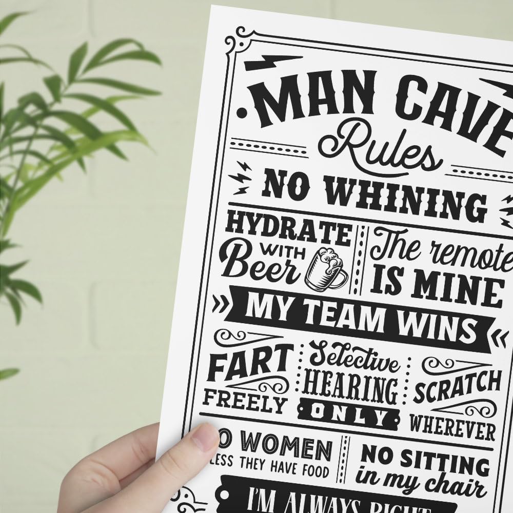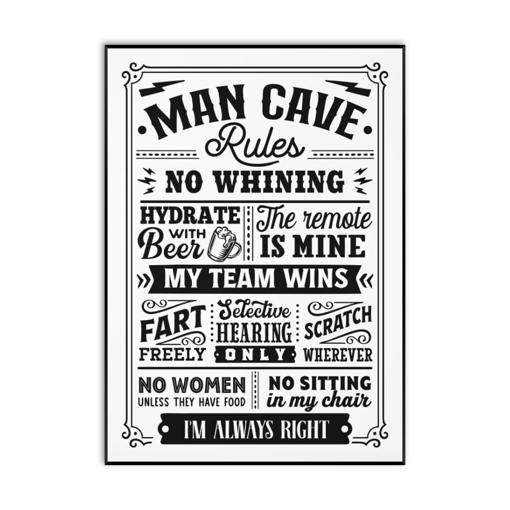 - Humorous Man Cave Wall Art: A fun and unique addition to your man cave, featuring amusing man cave rules.