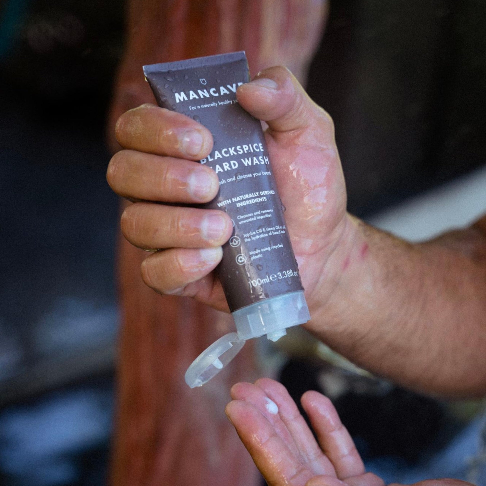 ManCave Blackspice Beard Wash – Nourishment and Invigoration for Dads' Beards.