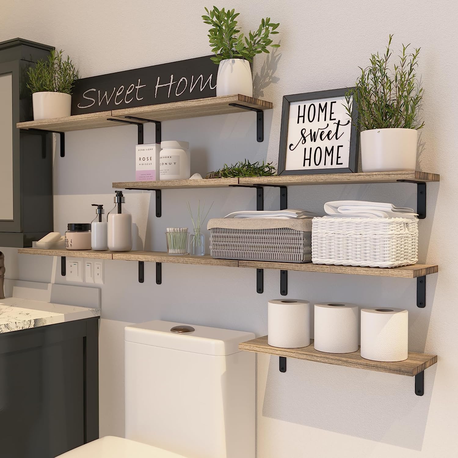 - Rustic and Natural Aesthetic: Crafted from high-quality rustic wood, each shelf features its own unique grain, adding natural charm to your space.