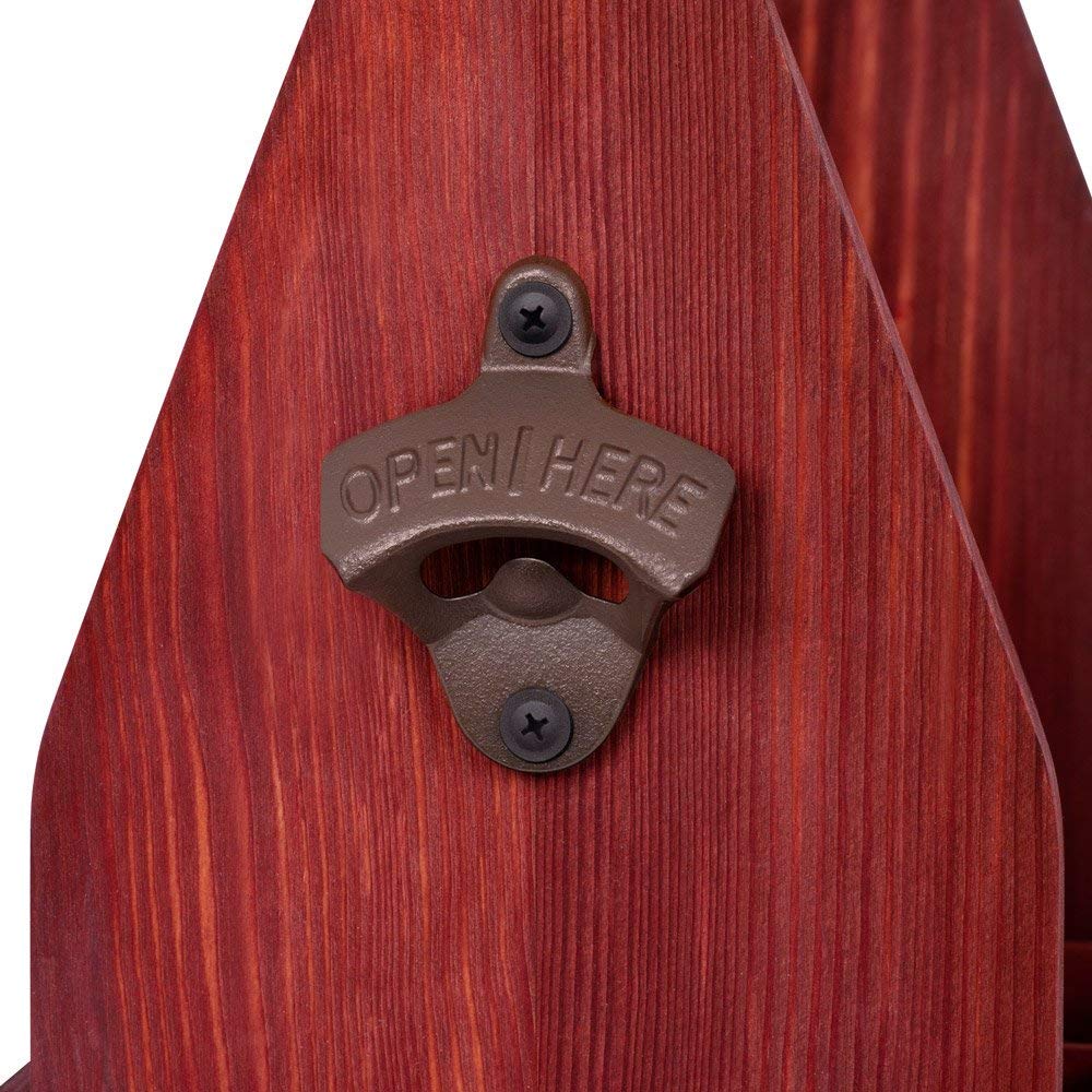 - Stylish and Practical: Made of high-quality pine wood, this elegant beer bottle carrier has individual compartments to prevent the bottles from colliding. The built-in bottle opener ensures convenience at every party or event.