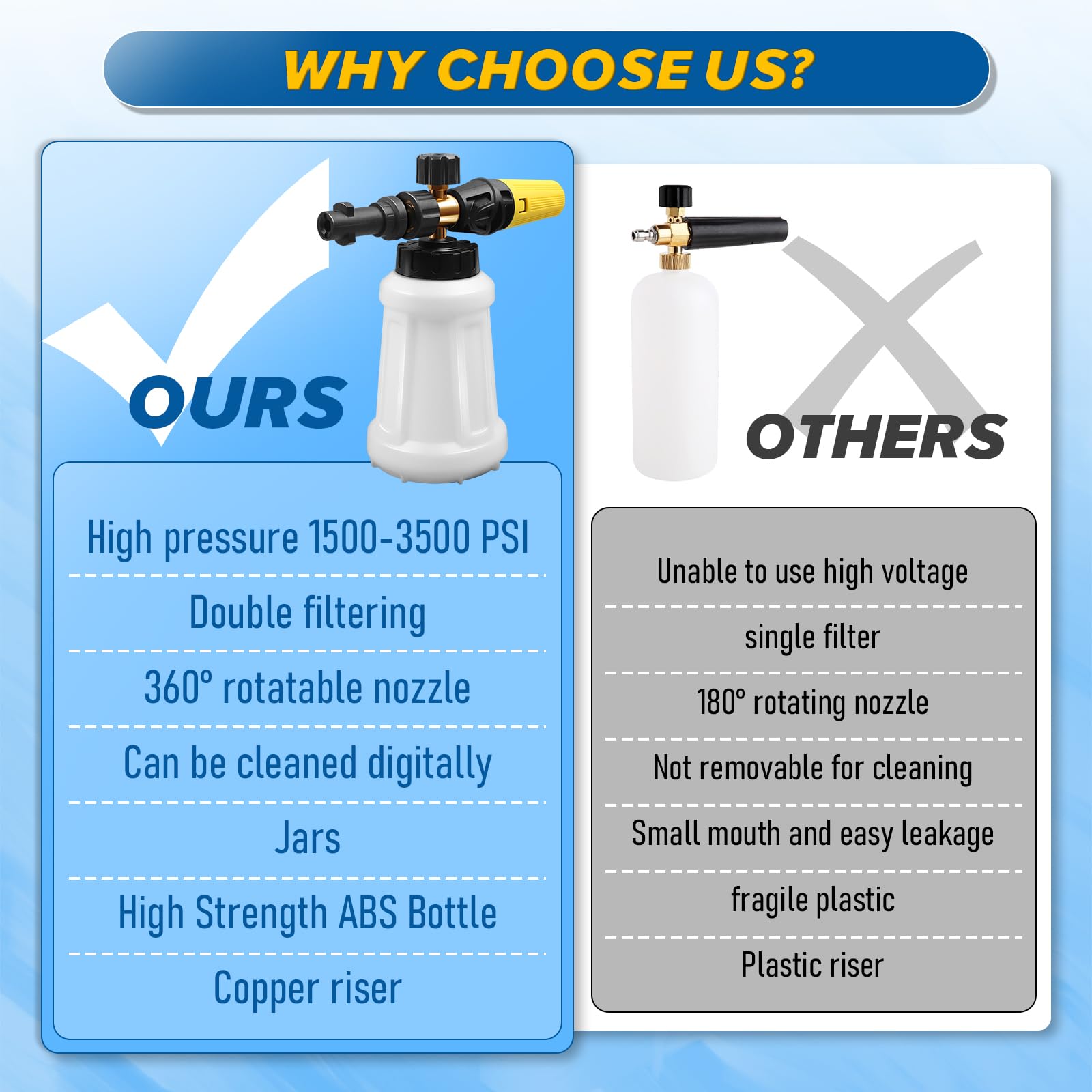 - Easy to Use: Simply add soap and warm water to the bottle, connect it to your pressure washer, and adjust the foam level and spray pattern for a seamless cleaning experience.