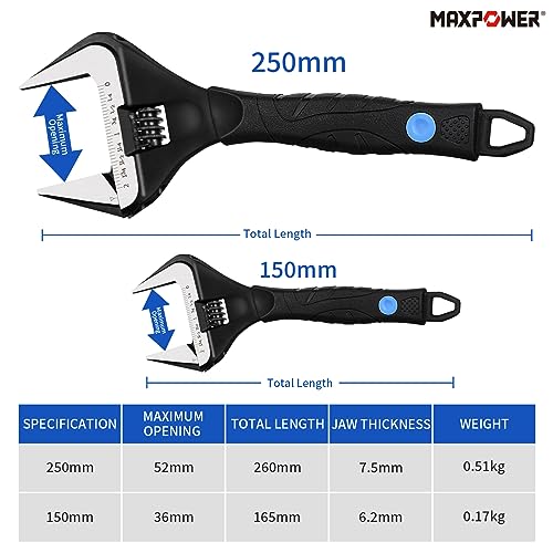 - MAXPOWER Adjustable Wrenches Wide Jaw | 2PCs Stubby Adjustable Spanner Set -